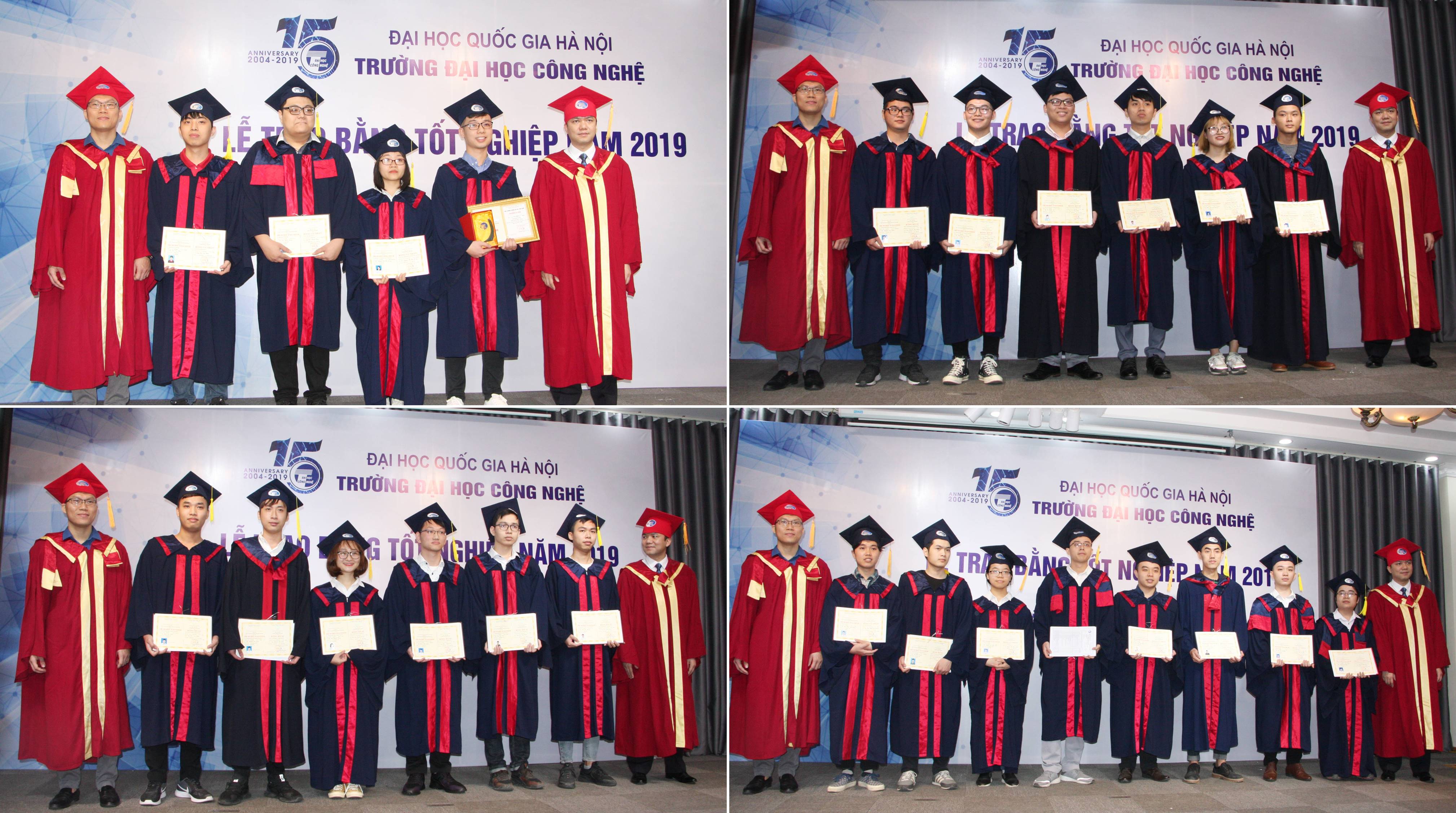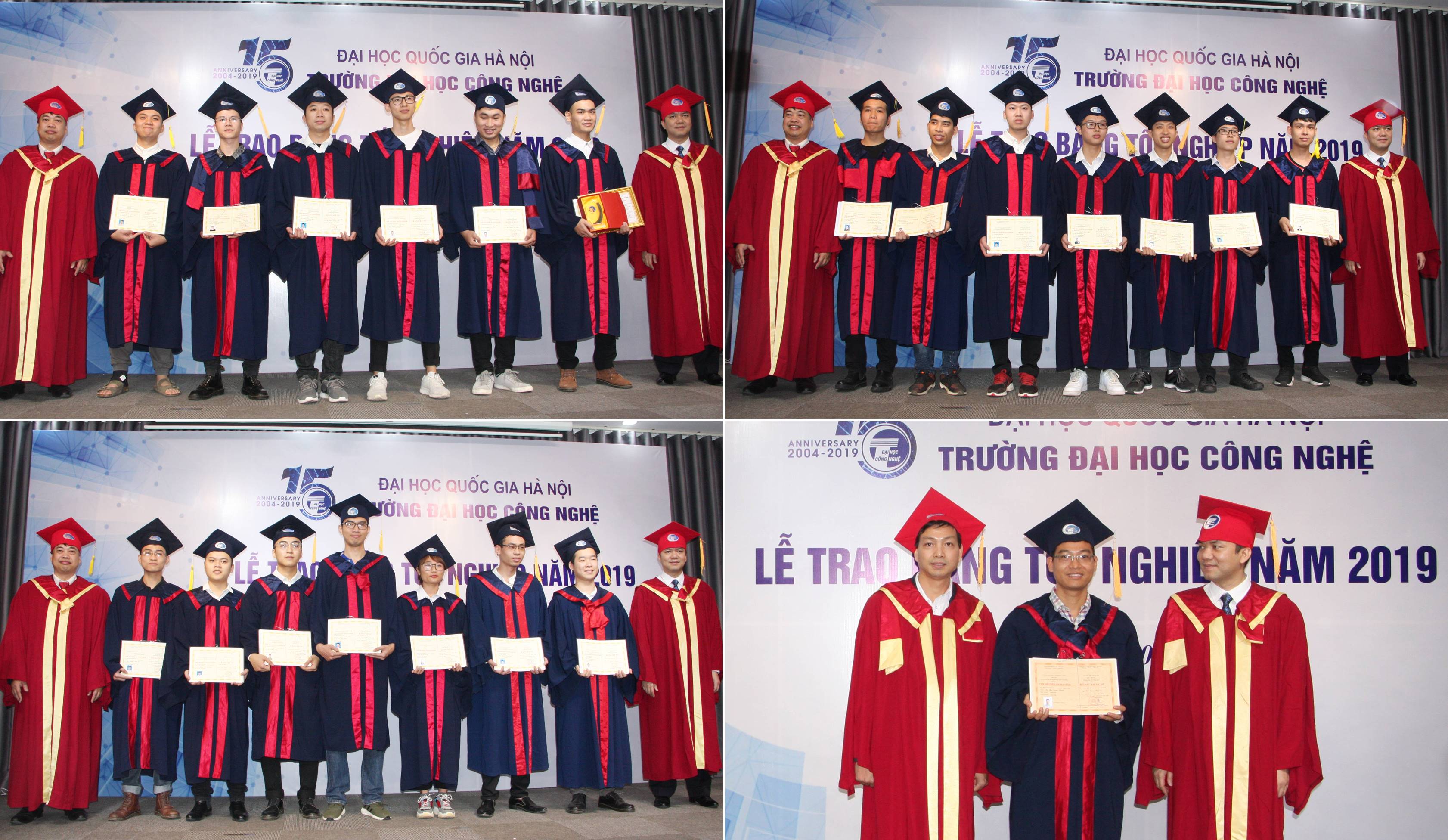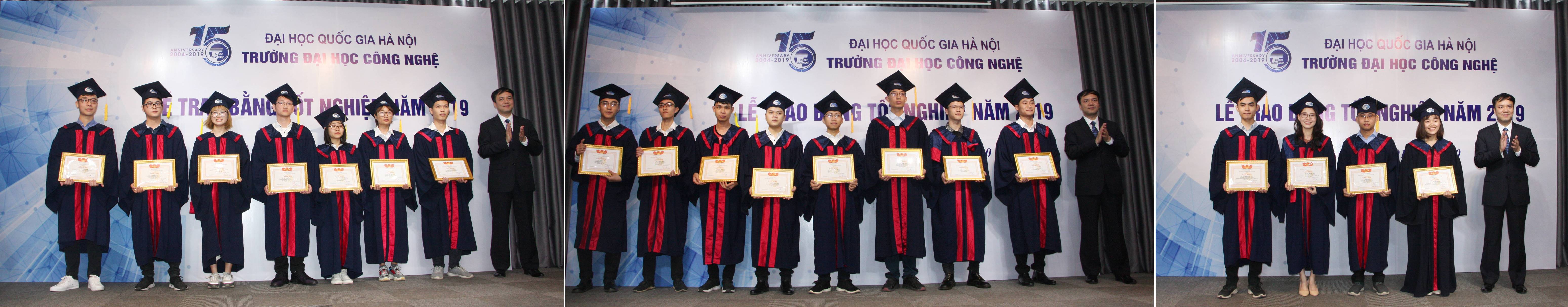 Tại buổi lễ, Hiệu trưởng Nguyễn Việt Hà đã khen thưởng các tân cử nhân là thủ khoa đầu ra gồm Phạm Thành Long (ngành Cơ học kỹ thuật), Vũ Minh Quang (ngành Truyền thông và Mạng máy tính) cùng các tân thạc sĩ với những thành tích xuất sắc trong học tập. Đồng thời, Hiệu trưởng đã khen thưởng cho 15 sinh viên khóa QH-2017-I/CQ có thành tích tốt trong toàn khóa học.