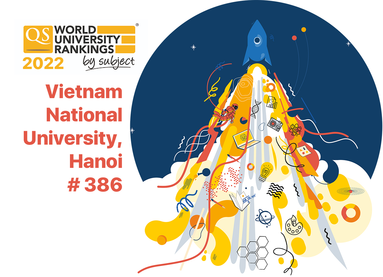 Cũng tại bảng xếp hạng này, ngày 06/04/2022, Quacquarelli Symonds công bố kết quả bảng xếp hạng 51 lĩnh vực thuộc 5 nhóm lĩnh vực của 1543 cơ sở giáo dục đại học thế giới, với khoảng 14000 chương trình đào tạo. ĐHQGHN tiếp tục gia tăng vị thế tại các lĩnh vực mũi nhọn khi có 6/51 lĩnh vực được xếp hạng. Trong 6 lĩnh vực được QS xếp hạng trong QS WUR by subject 2022 gồm: Khoa học máy tính và hệ thống thông tin, Cơ kỹ thuật, hàng không và chế tạo, Toán học, Vật lý và thiên văn học, Kinh doanh và Khoa học quản lý và Kỹ thuật điện và điện tử, ĐHQGHN có tới 5/6 lĩnh vực thuộc top 500 thế giới – đặc biệt 3 lĩnh vực Toán học (Mathematics); Vật lý và Thiên văn học (Physics & Astronomy) và Kinh doanh và Khoa học quản lý (Business & Management Studies) đều được xếp hạng số 1 tại Việt Nam.
