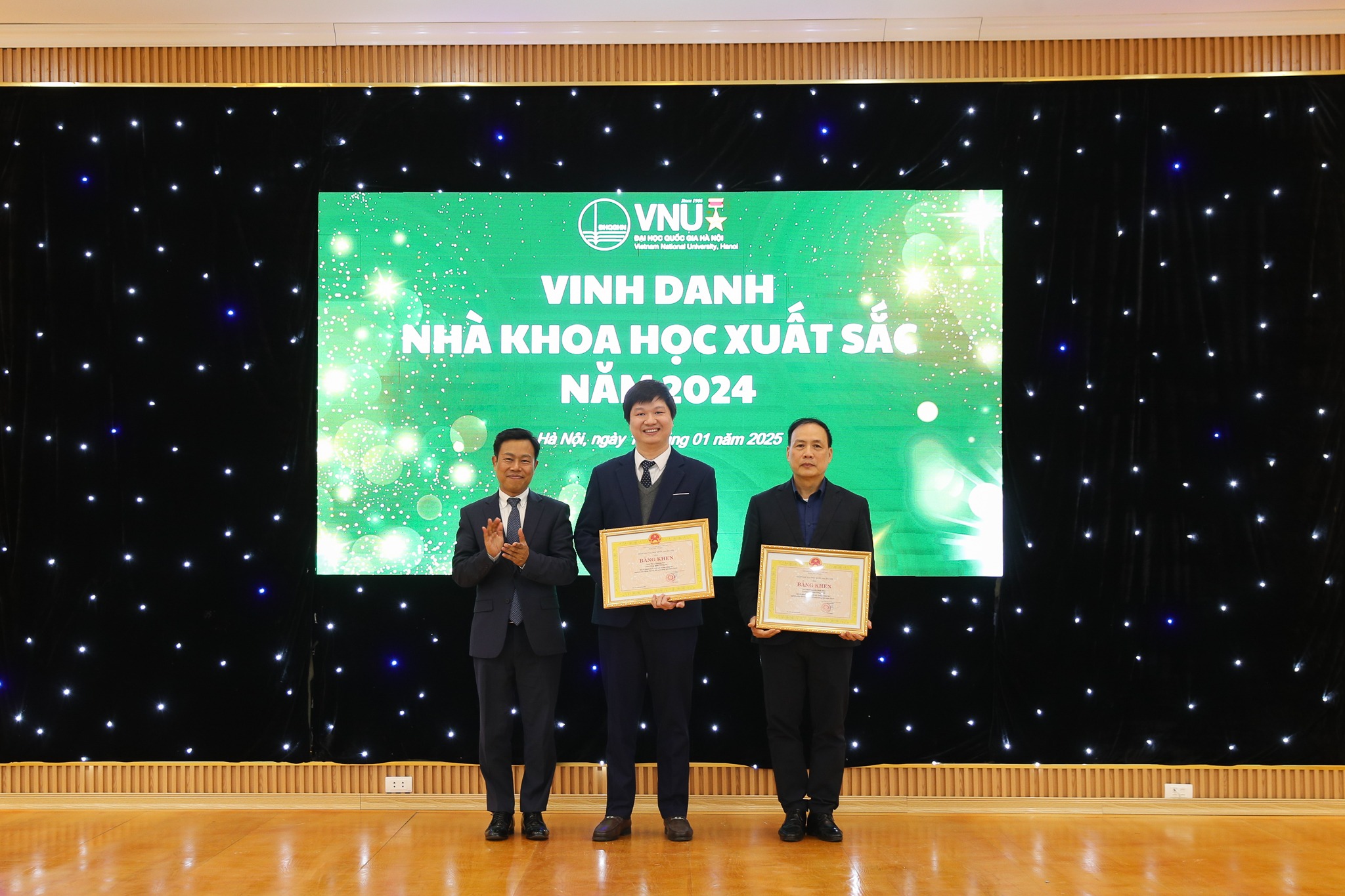 Phó Giám đốc ĐHQGHN Đào Thanh Trường trao Bằng khen của Giám đốc ĐHQGHN cho các nhà khoa học xuất sắc năm 2024