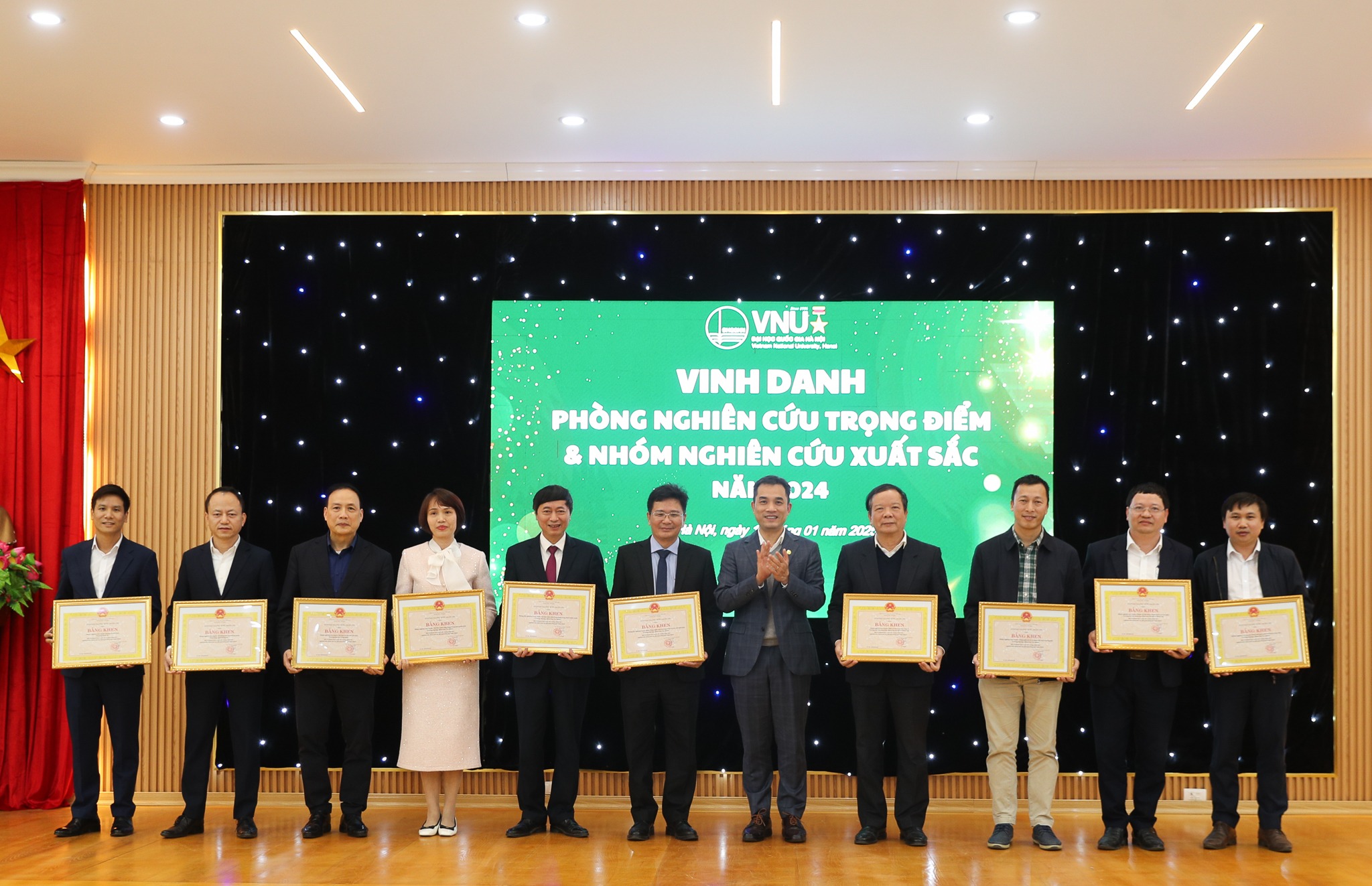 Năm 2024, Trường Đại học Công nghệ – Đại học Quốc gia Hà Nội (VNU-UET) có 2 nhóm nghiên cứu mạnh cấp ĐHQGHN và 2 nhà khoa học được lãnh đạo ĐHQGHN vinh danh trong khuôn khổ Hội nghị tổng kết công tác năm 2024 và triển khai kế hoạch nhiệm vụ năm 2025.