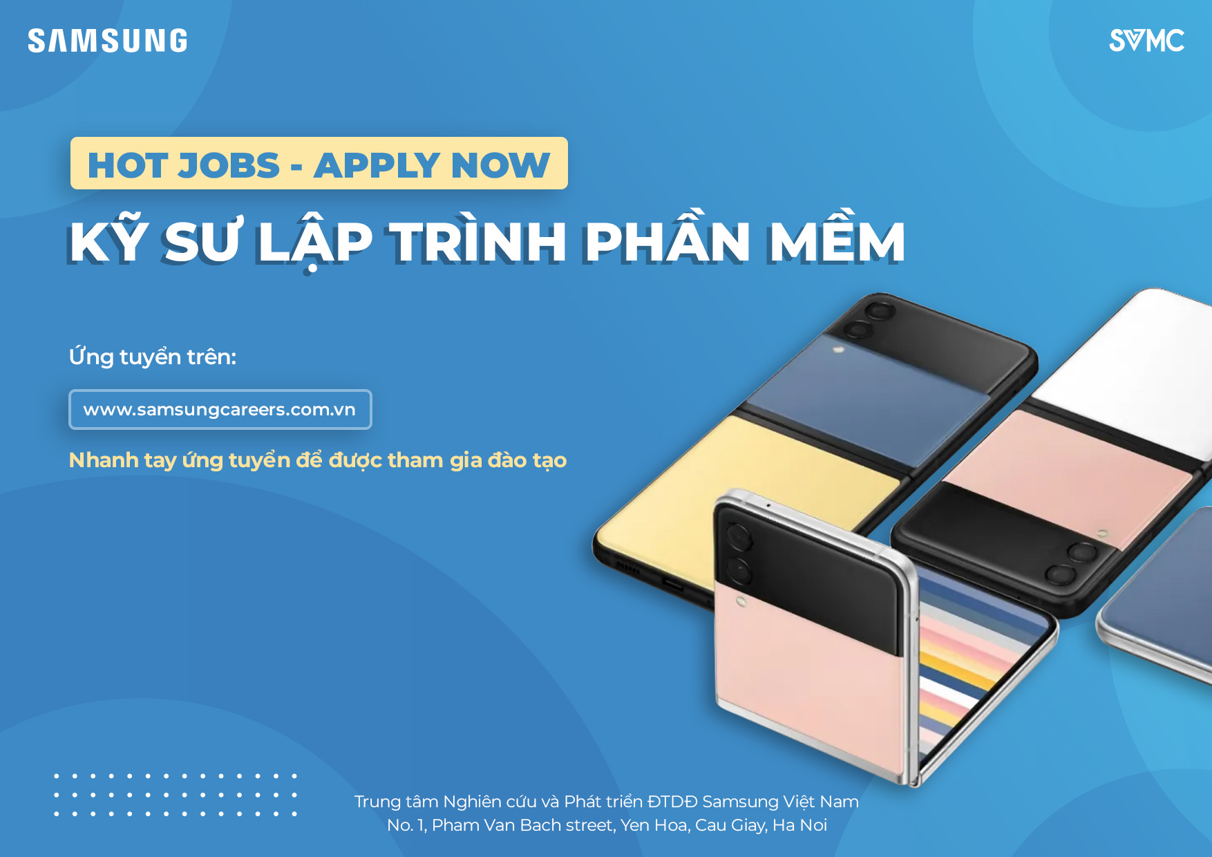 Nhằm chuẩn bị nhân lực cho “Ngôi nhà” mới chuẩn bị đi vào hoạt động và bổ sung nhân lực cho các dự án, SVMC (Trung tâm Nghiên cứu và Phát triển ĐTDĐ Samsung Việt Nam tại Hà Nội) …