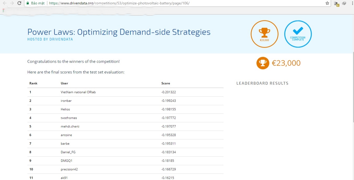Nhóm ORLab do TS. Hà Minh Hoàng giảng viên Khoa Công nghệ thông tin hướng dẫn đã đạt giải nhất cuộc thi Tối ưu sử dụng điện năng do drivendata.org tổ chức với giải thưởng 12.000 euro (hơn …