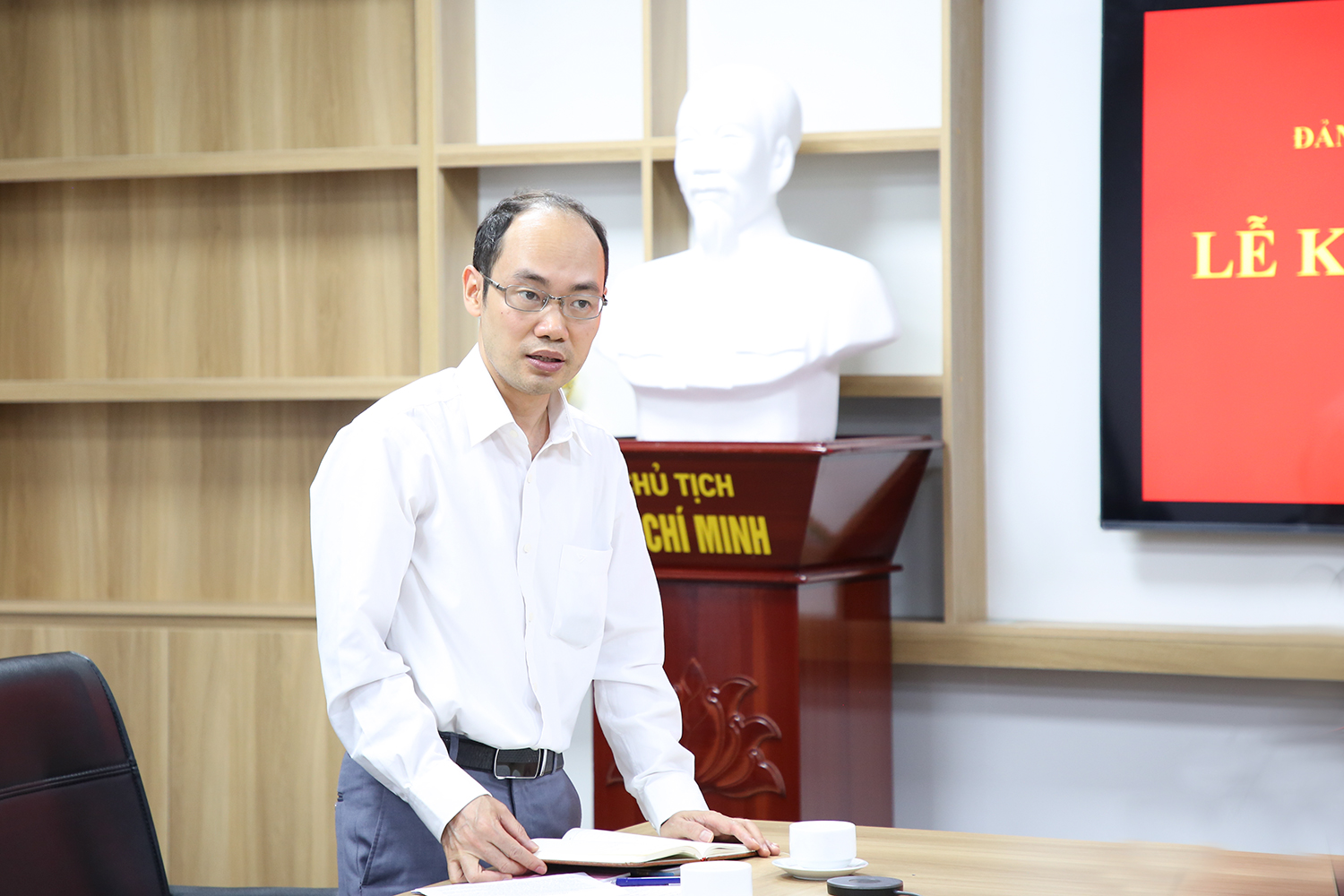 Tại buổi Lễ, đồng chí Nguyễn Anh Thái đã trao Quyết định kết nạp và phân công nhiệm vụ cho đảng viên mới Nguyễn Hoài Sơn.