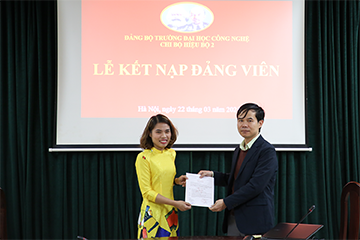 Lễ kết nạp được diễn ra trong không khí trang nghiêm, đúng trình tự, thủ tục kết nạp đảng viên mới với sự tham dự của đồng chí Nguyễn Việt Hà – Bí thư Đảng ủy, Hiệu trưởng Nhà trường, đồng chí Đinh Triều Dương – Đảng ủy viên, Bí thư Chi bộ Điện tử viễn thông cùng các đảng viên trong chi bộ.