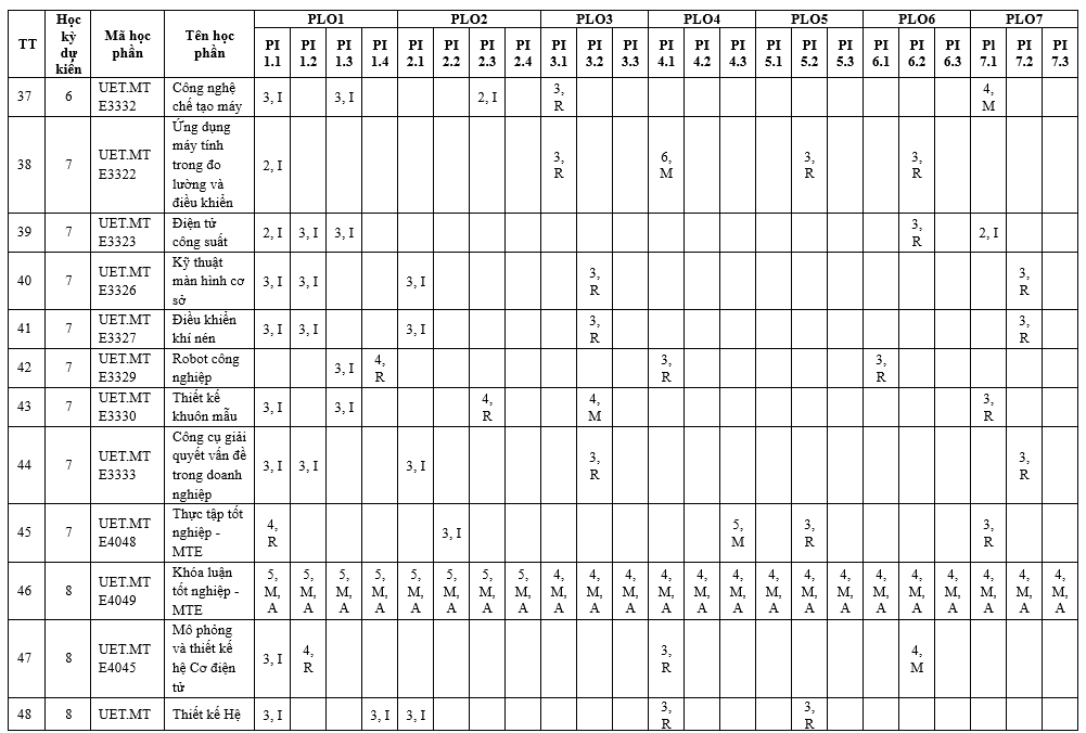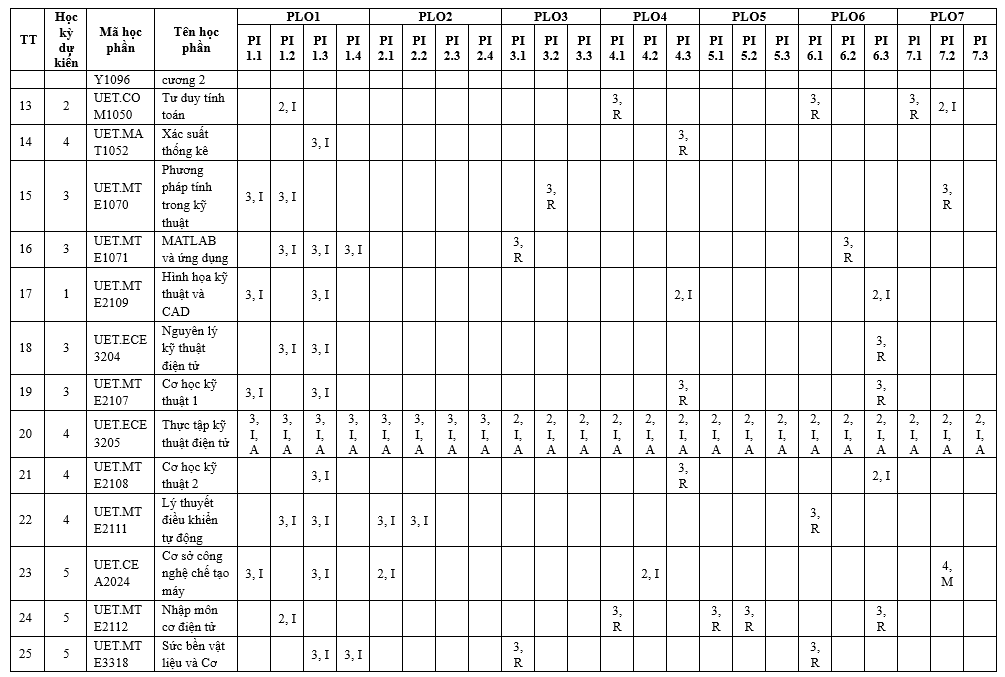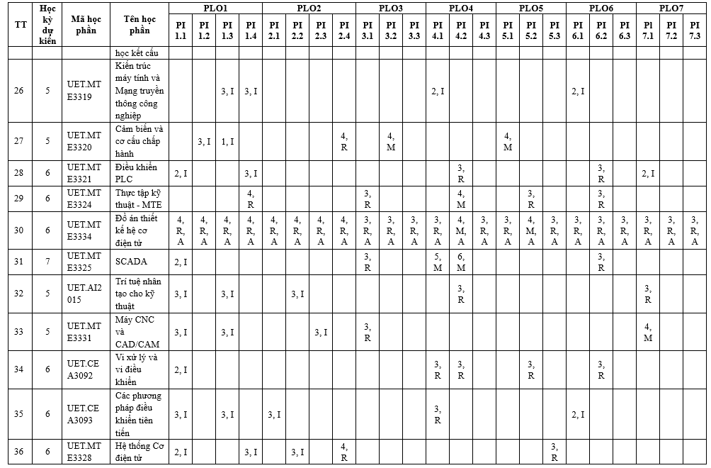 Chương trình đào tạo ngành Công nghệ kỹ thuật cơ điện tử