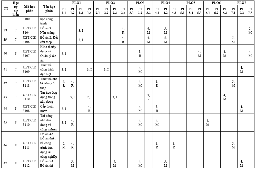 Chương trình đào tạo ngành Công nghệ kỹ thuật xây dựng