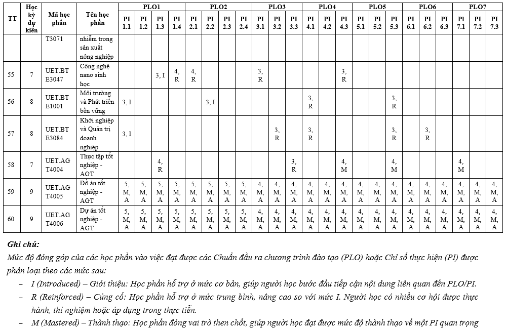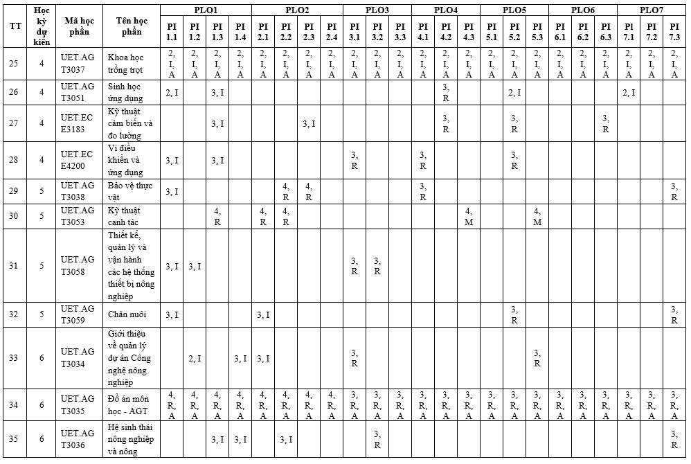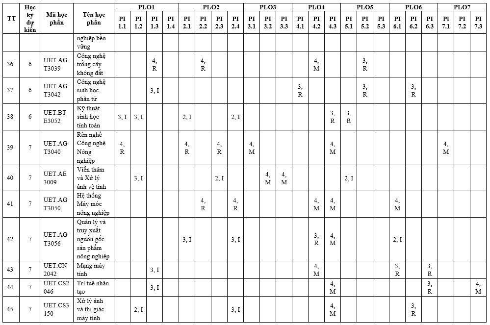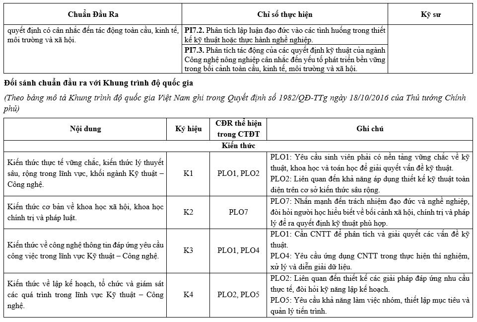 Chương trình đào tạo ngành Công nghệ nông nghiệp