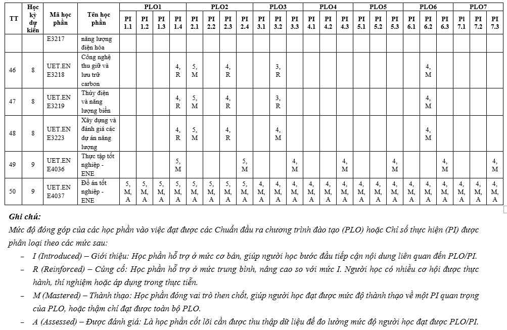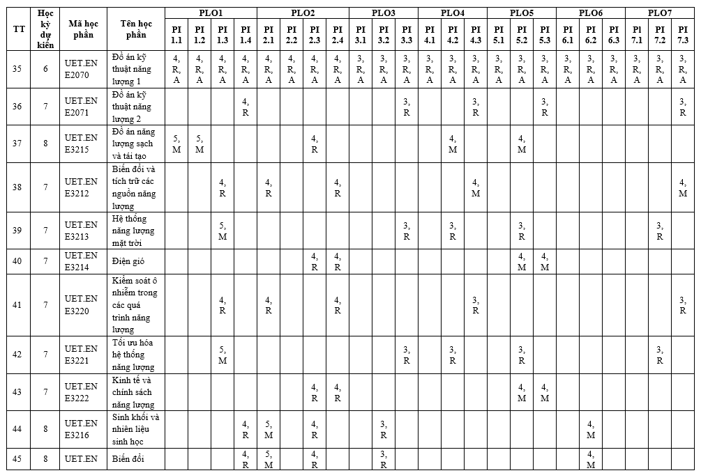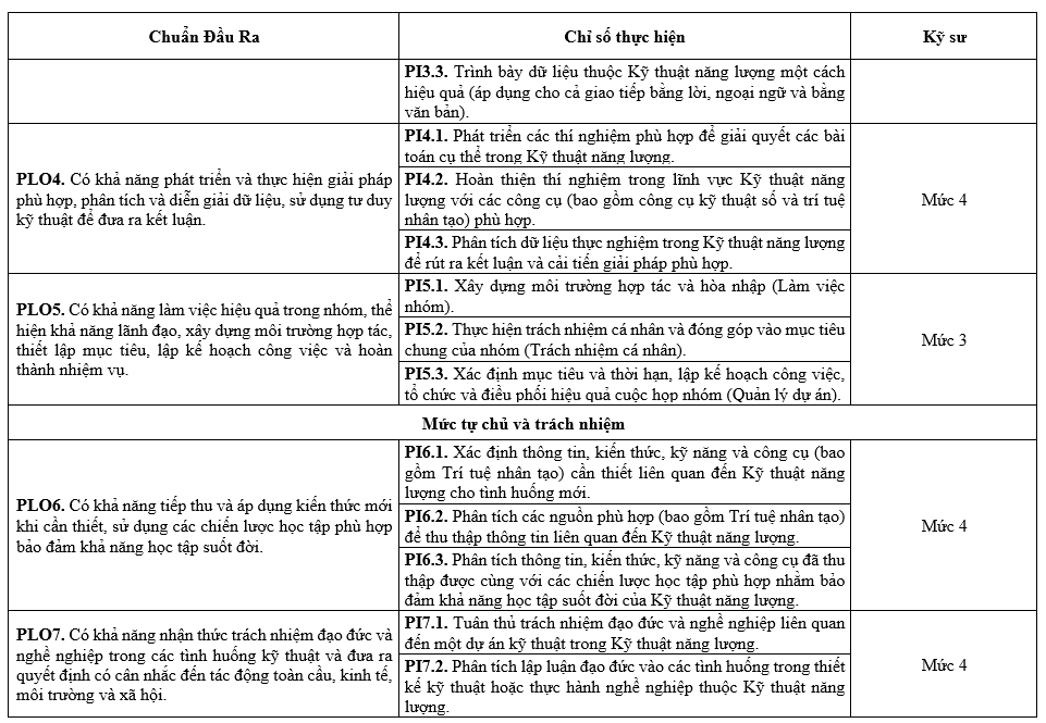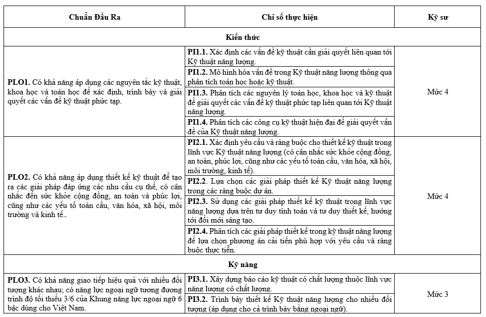 Chương trình đào tạo ngành Kỹ thuật năng lượng