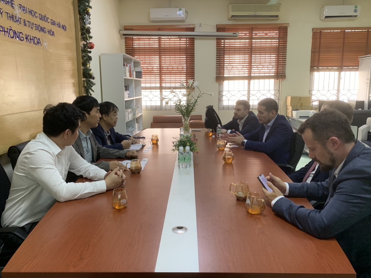 Qua trao đổi, phía Tập đoàn đánh giá cao quy mô, ngành nghề và chất lượng đào tạo của Trường ĐH Công nghệ, đồng thời mong muốn tìm hiểu một số thông tin về giảng viên, sinh viên, nhất là các nhóm nghiên cứu trong các lĩnh vực khoa học công nghệ liên quan, các chương trình hợp tác tuyển dụng nhân sự, tiếp nhận sinh viên thực tập và tham gia các dự án tại doanh nghiệp và nhà máy.