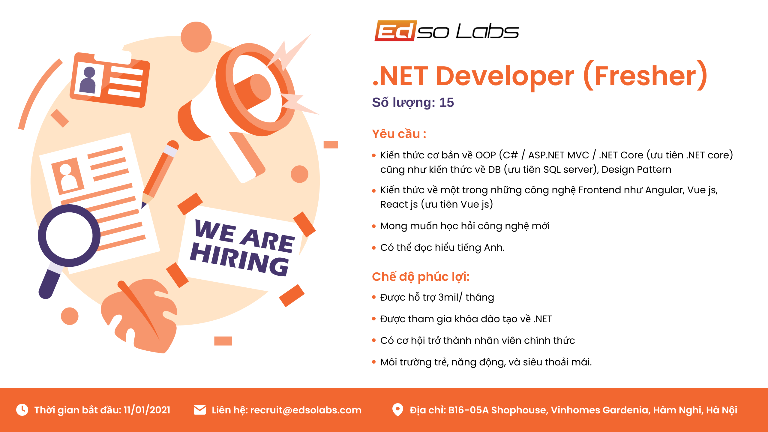 Công ty Edso Labs tuyển dụng NET Developer (Fresher)