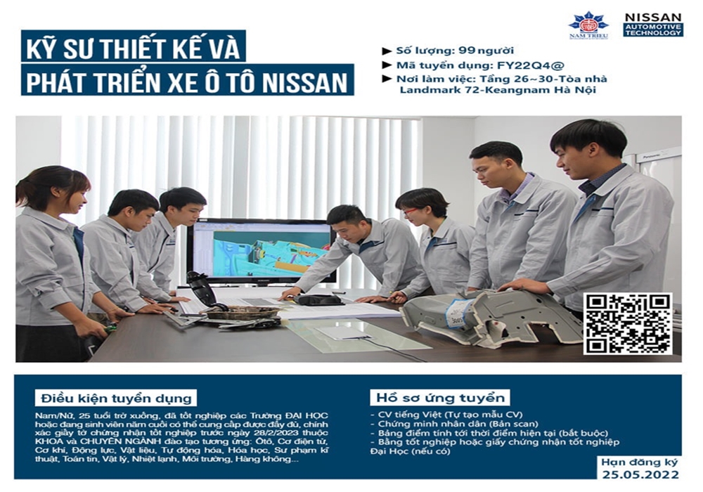 1/ Vị trí tuyển dụng: Kỹ sư thiết kế và phát triển ô tô NISSAN