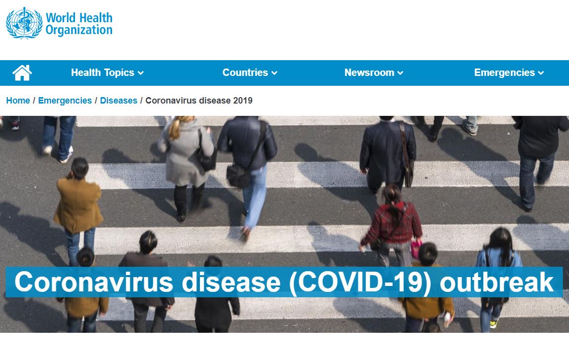 Trang chủ website của WHO về 2019-nCoV