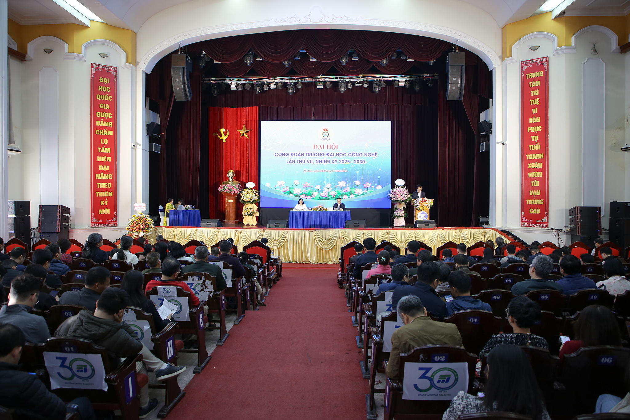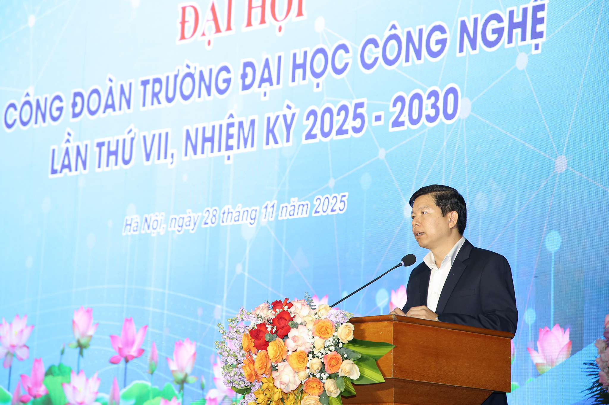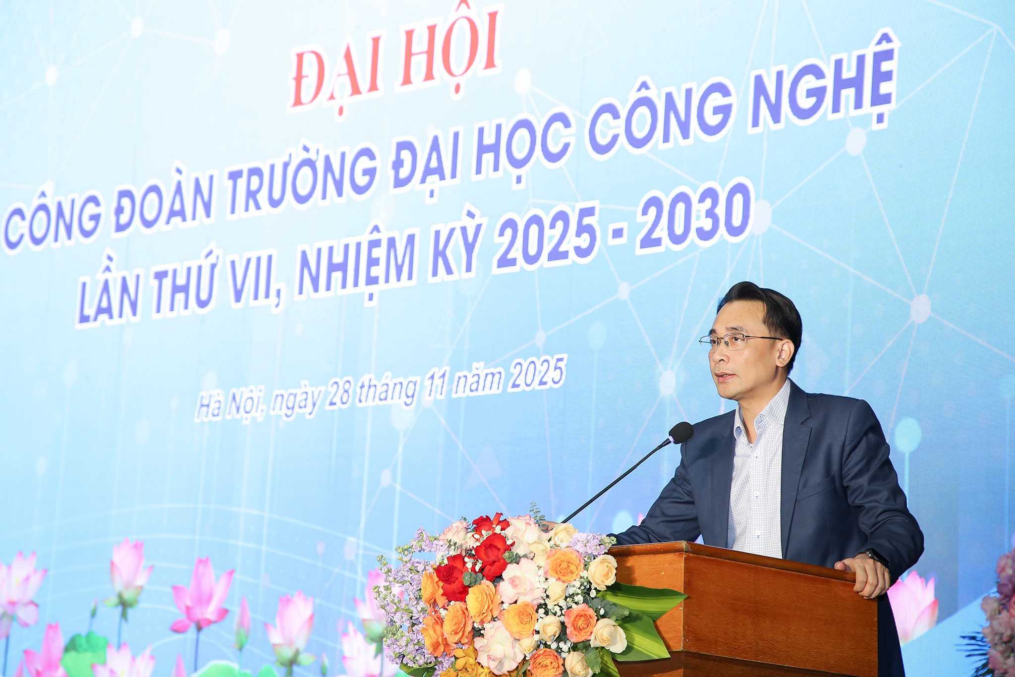 Sáng ngày 28/11/2025, Trường Đại học Công nghệ – Đại học Quốc gia Hà Nội (VNU – UET) đã tiến hành tổ chức Đại hội Công đoàn trường lần thứ VII, nhiệm kỳ 2025 – 2030. Đại hội kết thúc thành công tốt đẹp, bầu ra Ban Chấp hành Công đoàn Trường ĐH Công nghệ khóa VII, đại biểu dự Đại hội Công đoàn Đại học Quốc gia Hà Nội và thông qua nghị quyết của đại hội.