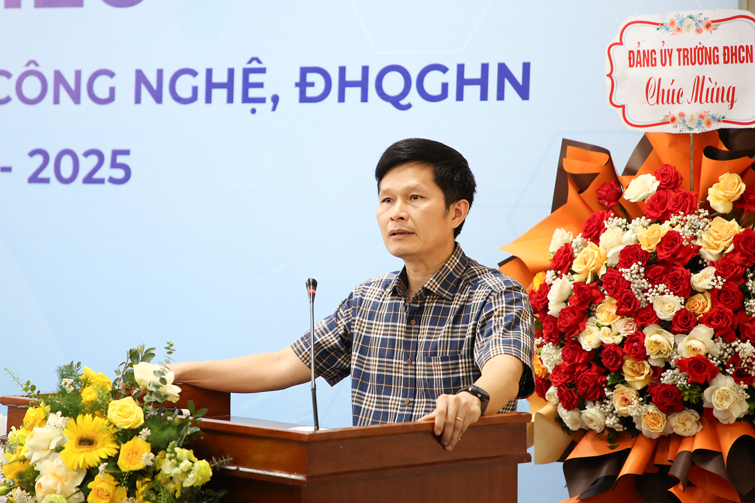 Tại Đại hội, đồng chí Hứa Thanh Hoa – Chủ tịch Hội Sinh viên, Bí thư Đoàn Thanh niên ĐHQGHN đã phát biểu chúc mừng sự kiện quan trọng, có ý nghĩa của Hội Sinh viên Trường ĐH Công nghệ,. Đồng chí Hứa Thanh Hoa cũng khẳng định dù gặp khó khăn do dịch Covid 19, nhưng Hội Sinh viên Trường ĐH Công nghệ vẫn thúc đẩy, phát triển nhiều mô hình hoạt động duy trì công tác Đoàn – Hội và gắn kết sinh viên. Bên cạnh đó, Hội vẫn thực hiện tốt chỉ đạo nội dung hoạt động các cấp như phong trào “Sinh viên 5 tốt”; xây dựng Hội vững mạnh, tạo môi trường rèn luyện cho sinh viên về chuyên môn, hoạt động thể chất. Hội Sinh viên Trường ĐH Công nghệ đã chứng tỏ vai trò là 1 trong 6 cơ sở hoạt động Đoàn – Hội tích cực trong ĐHQGHN.