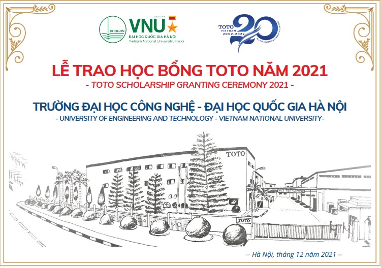 Được sự thống nhất của Công ty TNHH TOTO Việt Nam, để phù hợp với công tác phòng chống dịch Covid-19, Đại học Quốc gia Hà Nội tổ chức Lễ trao học bổng TOTO năm học 2021-2022 với các nội dung cụ thể: