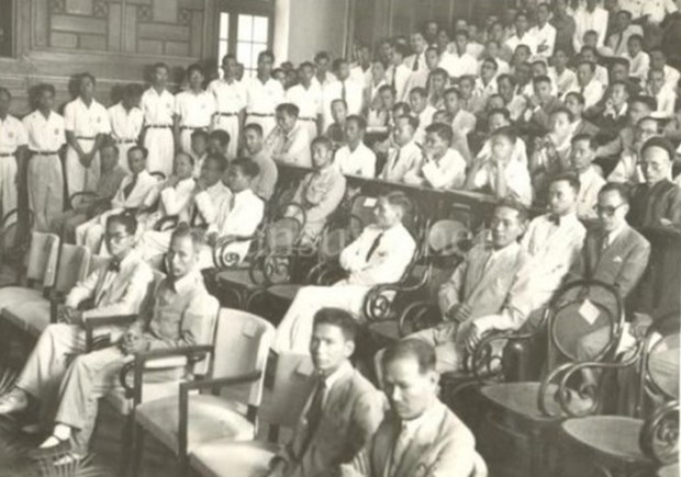Chủ tịch Hồ Chí Minh tại Lễ khai giảng của Đại học Quốc gia Việt Nam ngày 15/11/1945. (Ảnh tư liệu, Đại học Quốc gia Hà Nội)