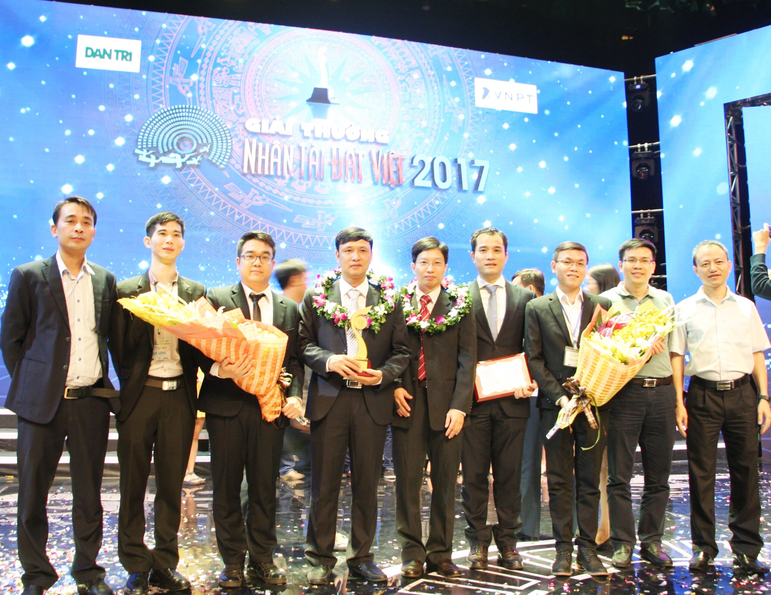 PGS.TS Phạm Bảo Sơn (thứ 2 từ trái sang) đại diện nhóm tác giả nhận giải nhì lĩnh vực CNTT tiềm năng của Giải thưởng Nhân tài Đất Việt 2017