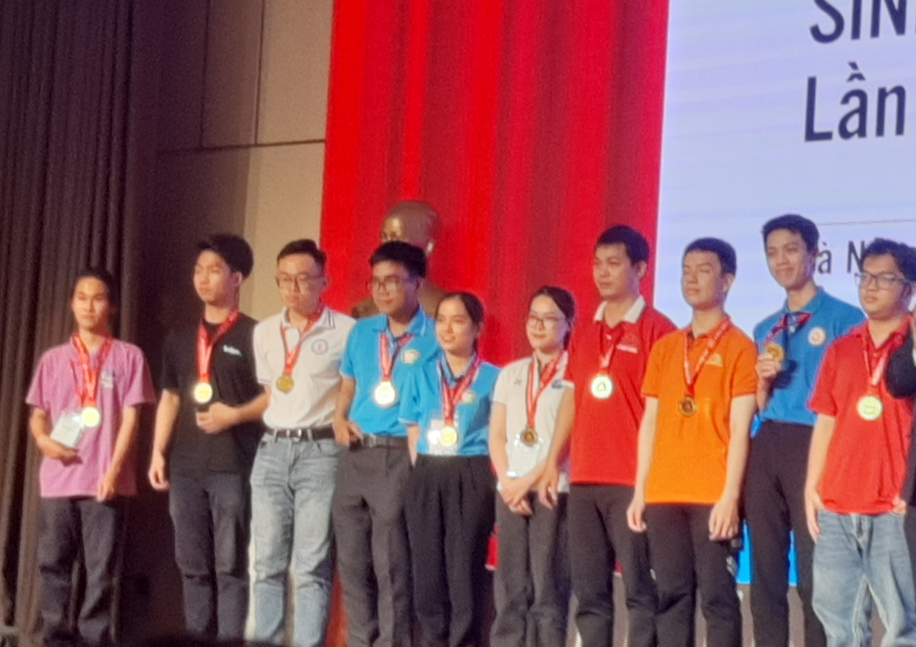 Sinh viên Trần Vũ Đức Huy (QH-2022 ngành Công nghệ thông tin) (ngoài cùng, bên trái ảnh) giải Nhất môn Đại số, giải Nhì môn Giải tích