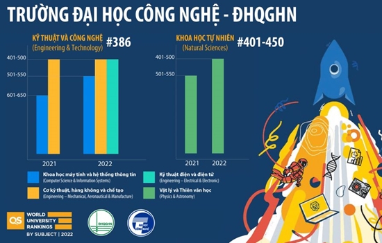 Ngày 06/04/2022, tổ chức giáo dục Quacquarelli Symonds (QS) công bố kết quả xếp hạng 51 lĩnh vực thuộc 5 nhóm lĩnh vực của 1543 cơ sở giáo dục đại học thế giới, với khoảng 14000 chương trình đào tạo. Trong đó, Trường Đại học Công nghệ – Đại học Quốc gia Hà Nội có các chương trình đào tạo thuộc 4 lĩnh vực được xếp ở vị trí từ 400 đến 600 tốt nhất thế giới. Đặc biệt, năm 2022 là năm đầu tiên lĩnh vực Kỹ thuật điện và điện tử được xếp hạng, với thứ hạng 451-500.