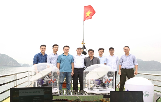 Nhóm thực hiện đề tài nghiên cứu sản phẩm thương mại hóa trạm thu di động tín hiệu truyền hình vệ tinh ứng dụng trên tàu biển