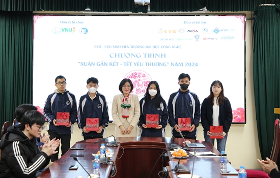 Với tinh thần “Xuân gắn kết – Tết yêu thương”, chiều ngày 29/01/2024, Trường Đại học Công nghệ – Đại học Quốc gia Hà Nội (VNU-UET) phối hợp với Ban Liên lạc cựu sinh viên, đại diện các CEO của doanh nghiệp đã tổ chức gặp mặt, tặng quà cho các sinh viên quốc tế, sinh viên có hoàn cảnh khó khăn nhân dịp Xuân Giáp Thìn 2024.