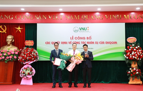 Ngày 17/5/2023, tại Hòa Lạc, Giám đốc ĐHQGHN Lê Quân đã trao quyết định công nhận chức danh Chủ tịch Hội đồng trường cho GS.TSKH Nguyễn Đình Đức và công nhận Hiệu trưởng Trường ĐH Công nghệ với GS.TS Chử Đức Trình.