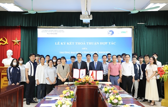Ngày 13/7/2023, Trường Đại học Công nghệ – Đại học Quốc gia Hà Nội (VNU-UET) đã ký kết thỏa thuận hợp tác với Văn phòng đại diện Phòng Giáo dục Hàn Quốc tại Việt Nam (KEC), đồng thời tổ chức Lễ khai giảng chương trình tiếng Hàn mùa hè nhằm tăng cường năng lực tiếng Hàn cho sinh viên UET và thúc đẩy mối quan hệ hợp tác giữa hai bên.