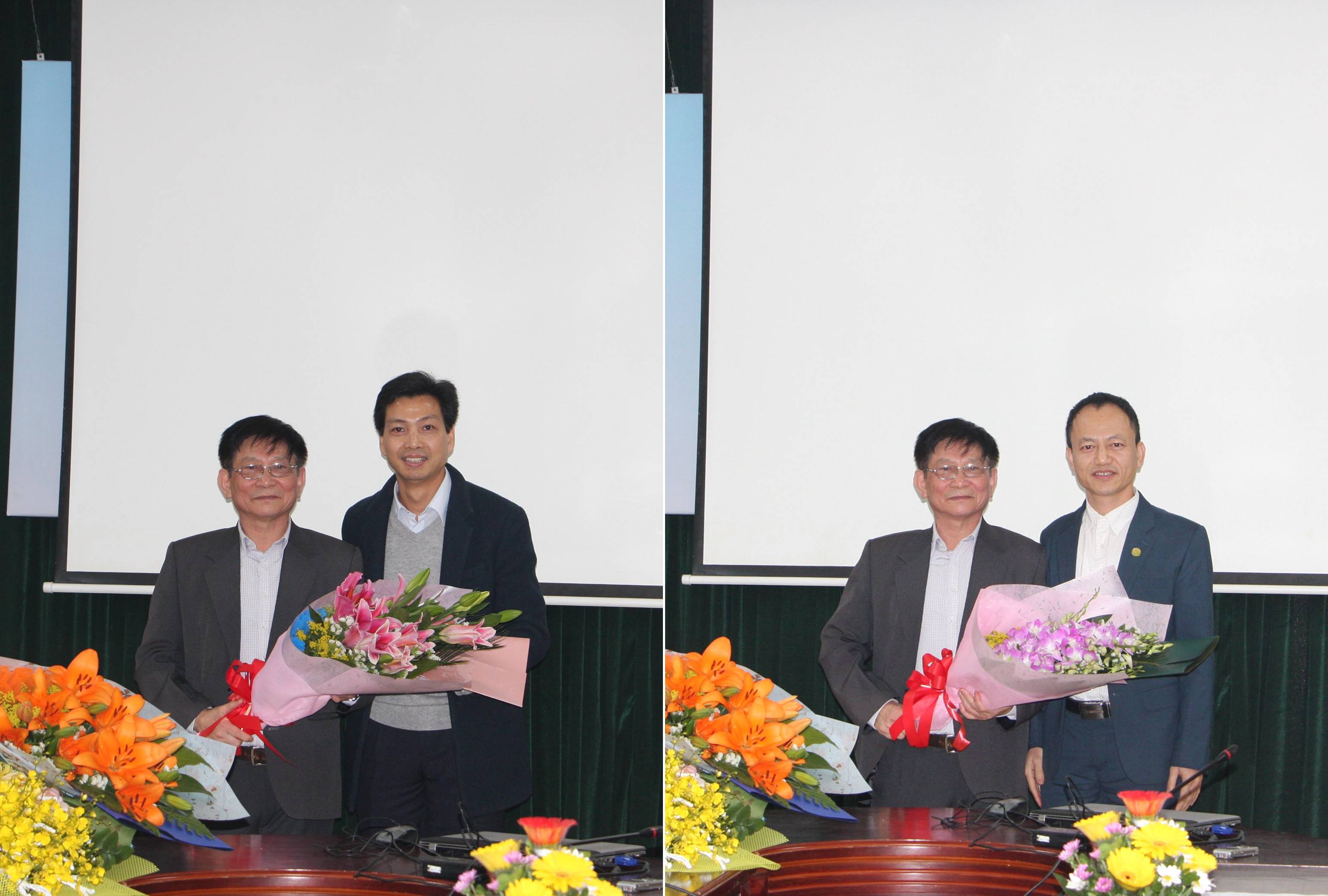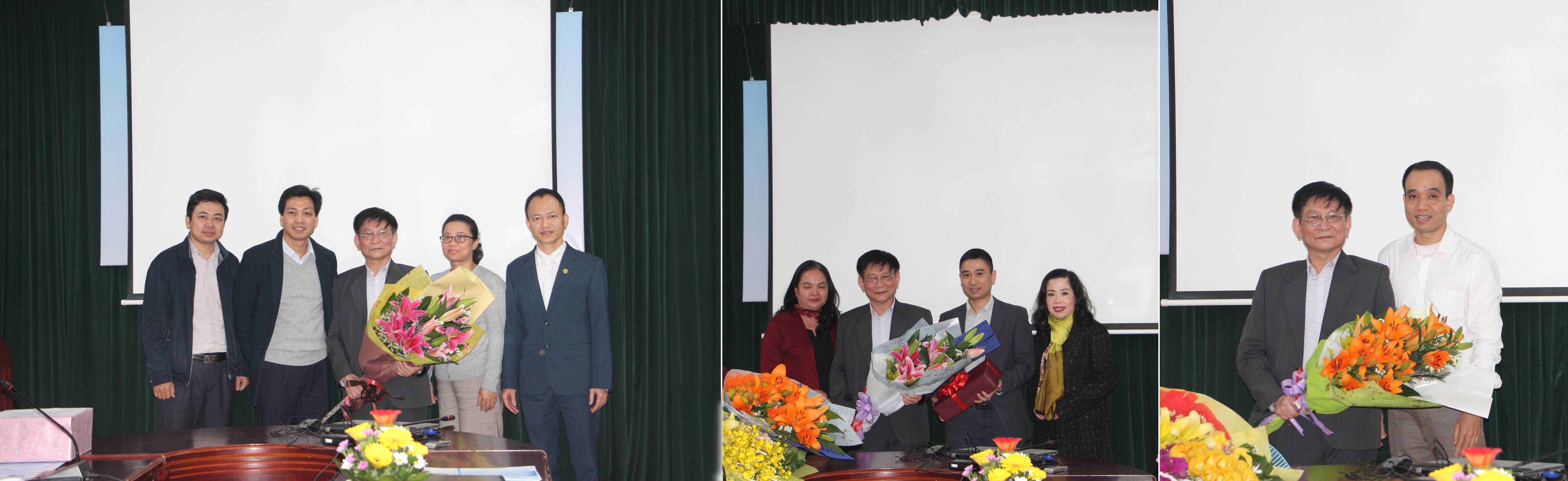 Cán bộ khoa ĐTVT chụp ảnh lưu niệm và trao gửi những bó hoa tươi thắm đến GS.TS. NGƯT Bạch Gia Dương
