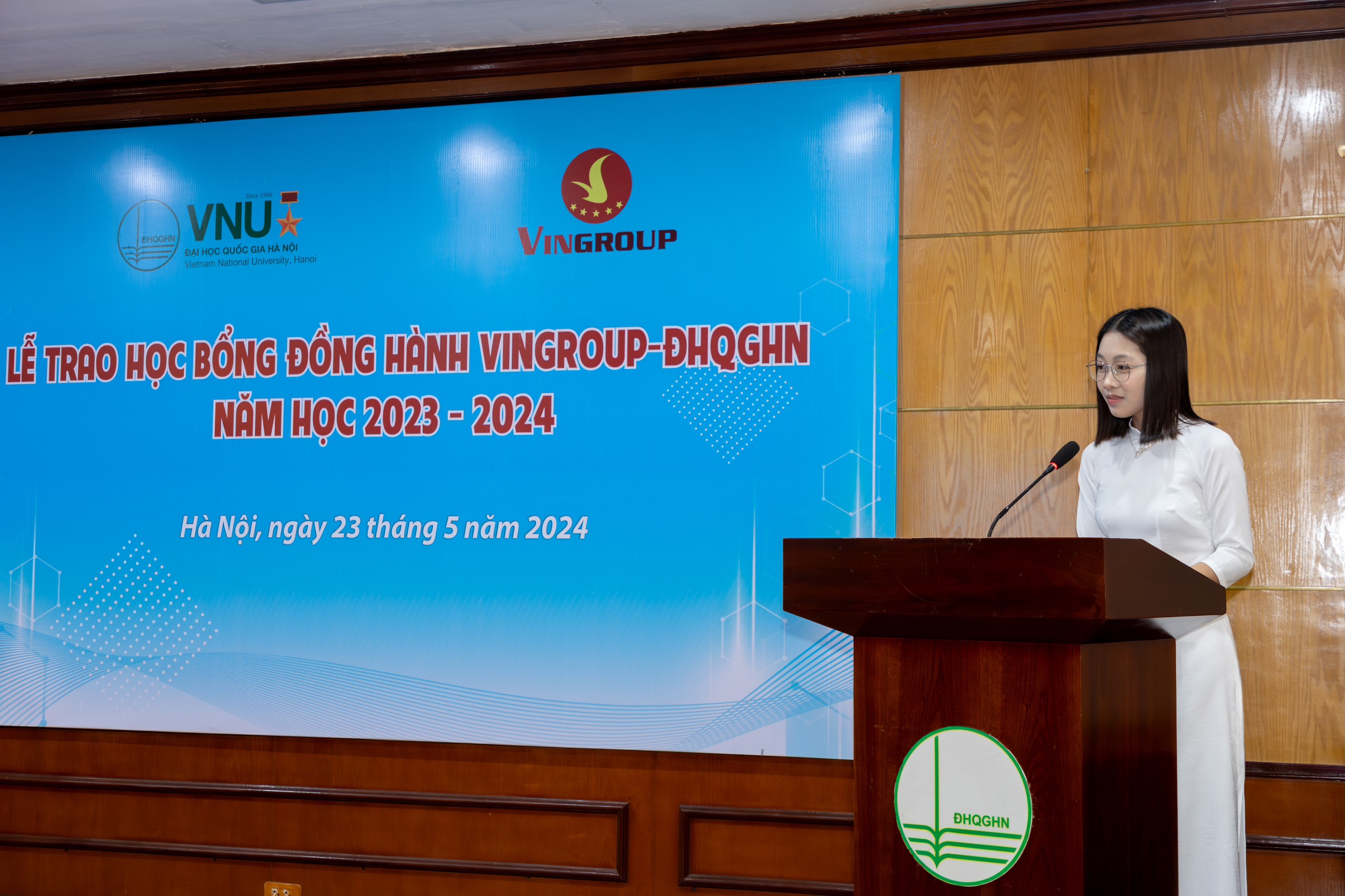 Sinh viên Vũ Thị Minh Thư tại Lễ trao học bổng Đồng hành Vingroup