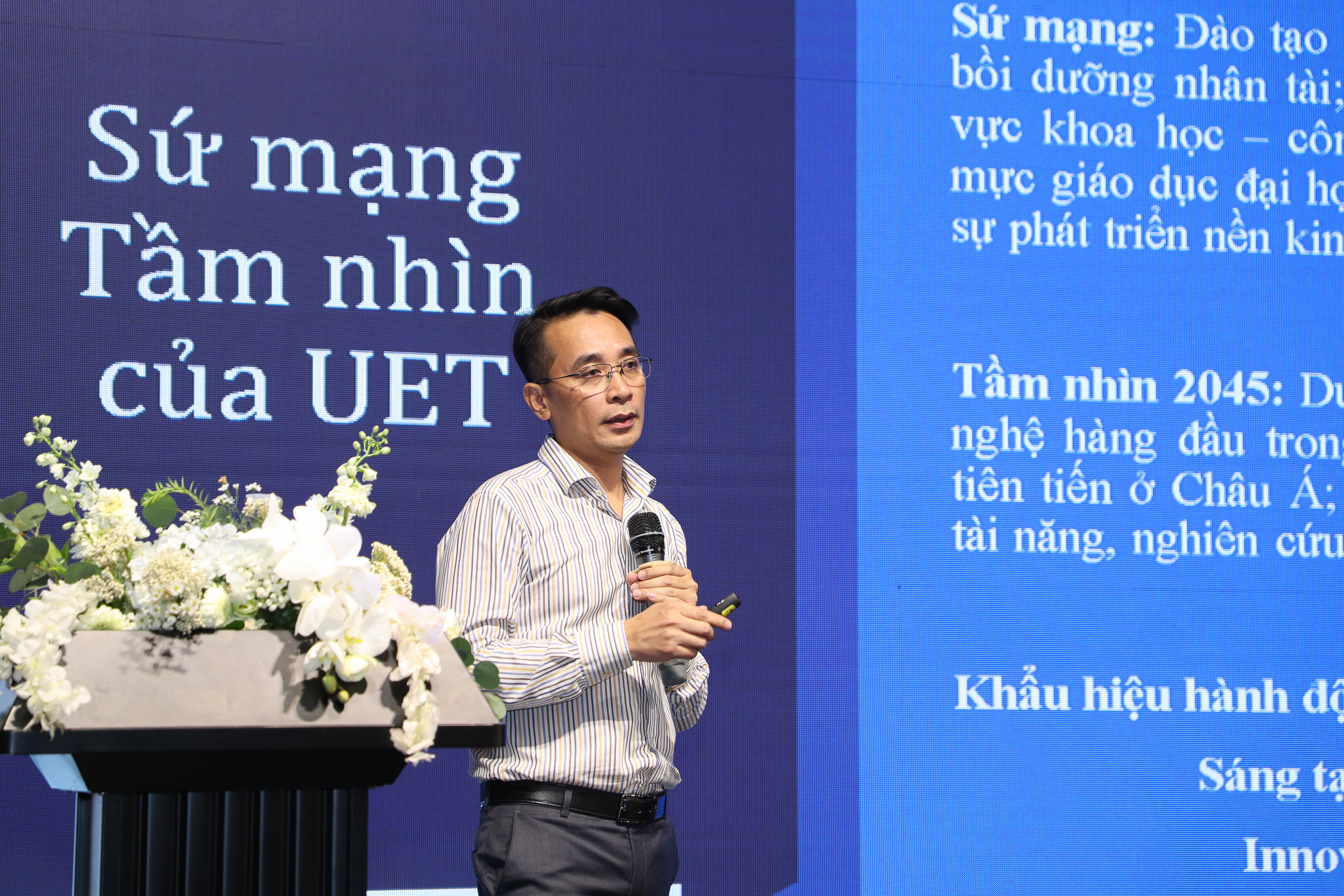 Một lần nữa, Phó Giám đốc khẳng định sự tự hào về những thành tích của Trường, tự hào là giảng viên UET và tự tin vào sự phát triển của Trường trong thời gian tới. Đồng thời, PGS mong muốn toàn thể cán bộ giảng viên, cán bộ Nhà trường đồng lòng, có khát vọng để đóng góp vào sự phát triển Nhà trường, ĐHQGHN và xã hội.
