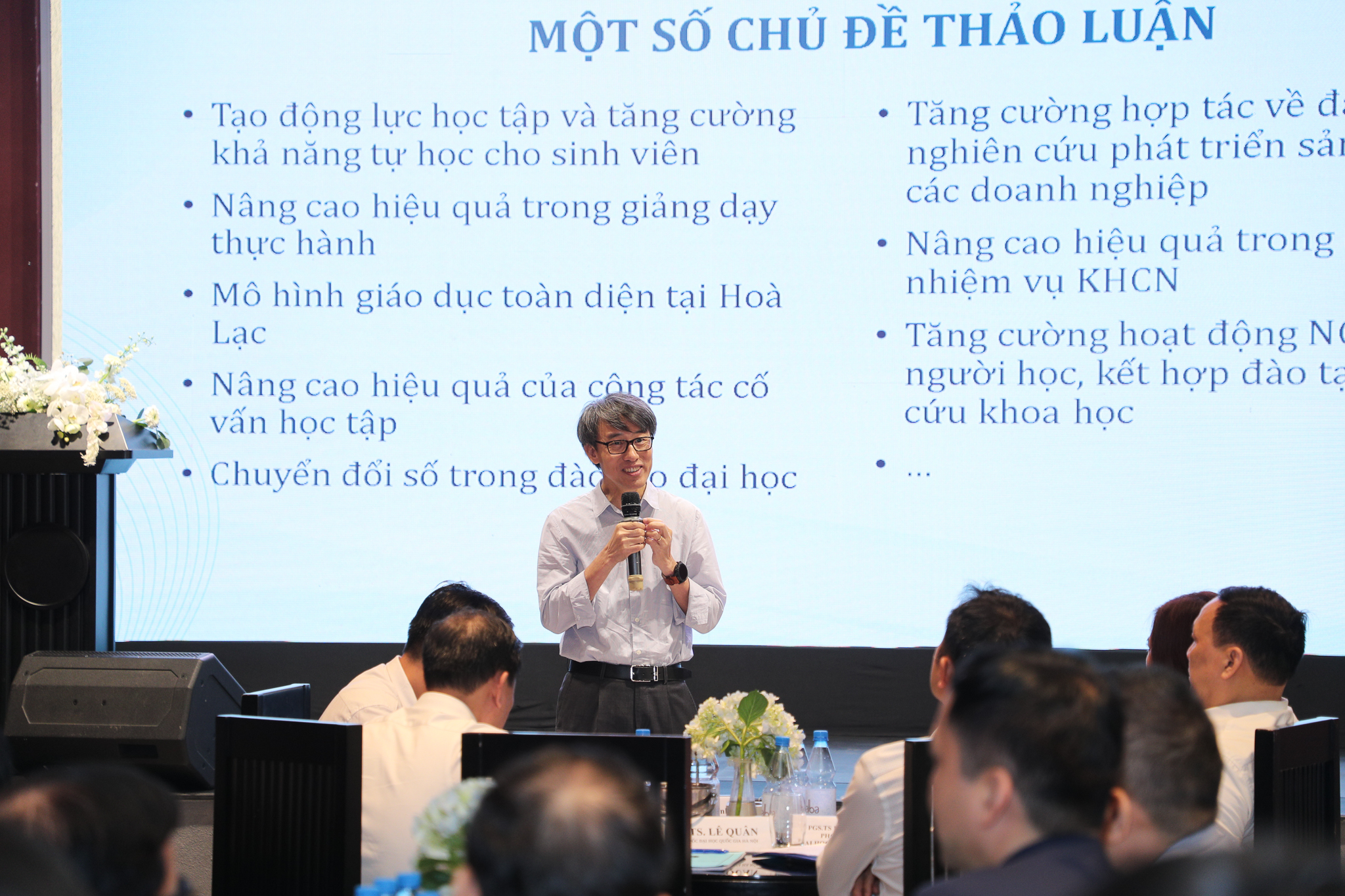 Nhà trường cần chú trọng công tác thu hút nguồn nhân lực, giảng viên, nhà khoa học chất lượng cao, tăng cường hợp tác trao đổi giảng viên và tham gia các lớp tập huẩn, trải nghiệm, giao lưu quốc tế để tăng nghiệp vụ, chuyên môn. ĐHQGHN cam kết áp dụng các chính sách tốt tới từng cá nhân từng đơn vị, khoa, ngành để thu hút và đầu tư vun cao các nhóm nhà khoa học mũi nhọn tại nhà trường.