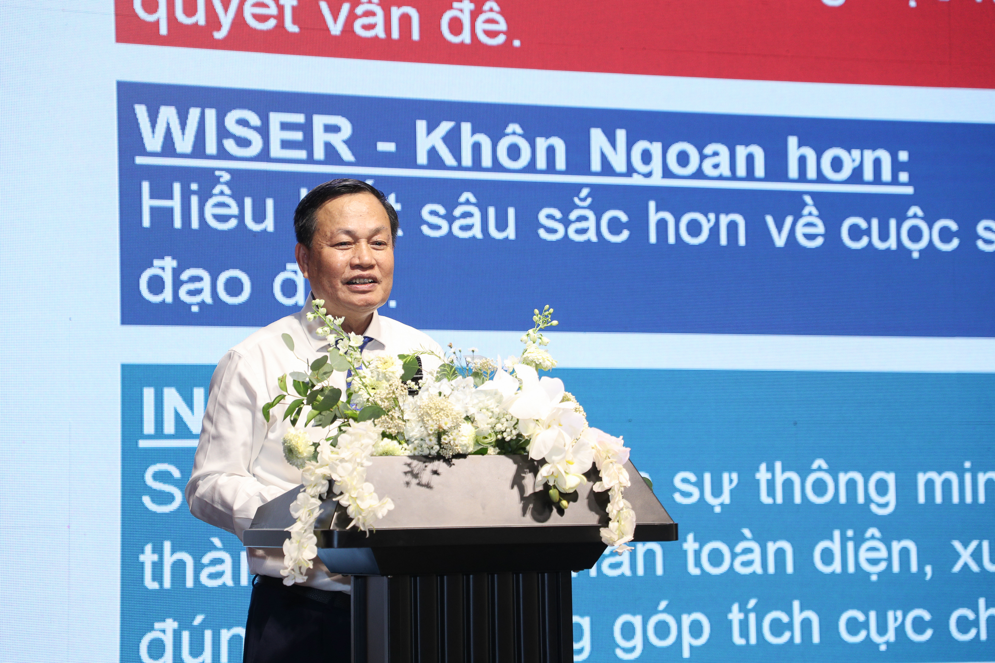 Hội nghị cũng được nghe các báo cáo của GS.TS. Nguyễn Hữu Đức, Nguyên Phó giám đốc ĐHQGHN, Nguyên Hiệu trưởng Nhà trường về “VNU-UET: Từ SMART đến WISER & AI” với các nội dung: chuyển đổi chuẩn đầu ra từ Smart sang Wiser; Từ Bachelor of Science đến Bachelor of Innovation; Đổi mới sáng tạo khôn ngoan; Hệ sinh thái đổi mới sáng tạo; Áp dụng AI xây dựng chuẩn đầu ra chương trình đào tạo và Báo cáo về đổi mới công tác giảng dạy trên phần mềm Canvas LMS của TS Lê Khánh Trình, giảng viên Khoa Công nghệ thông tin cho thấy sự cần thiết phải sử dụng phần mềm này tại Trường Đại học Công nghệ – ĐHQGHN để cải tiến, cập nhật nội dung học, nâng cao chất lượng đào tạo.