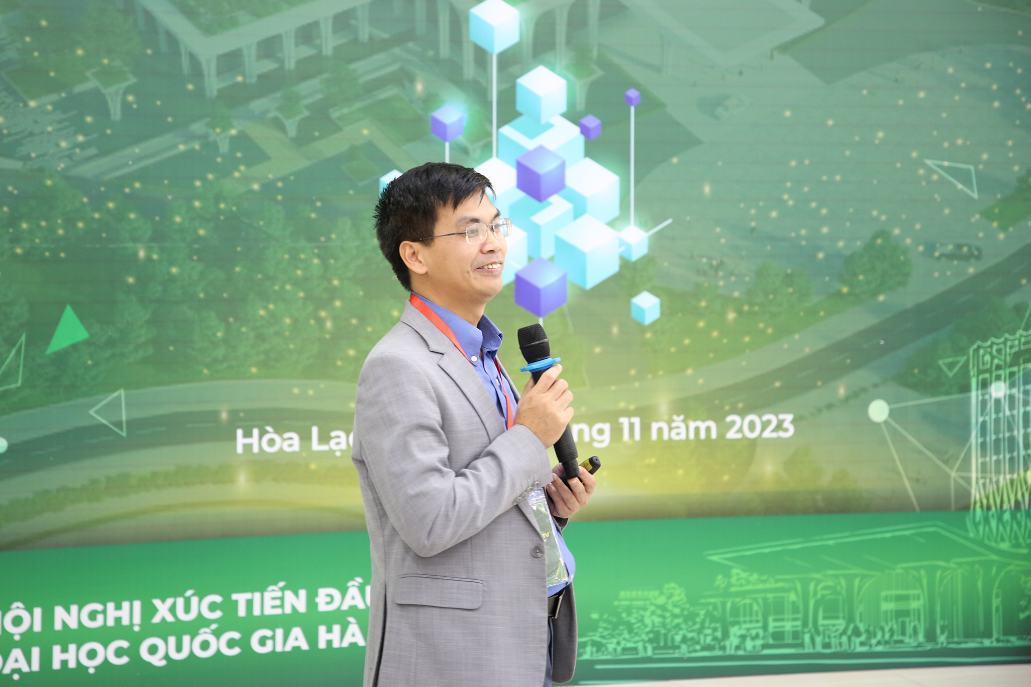 Phát biểu tại hội nghị, Giám đốc ĐHQGHN Lê Quân đã điểm lại kết quả hợp tác doanh nghiệp sau 01 năm kể khi từ Hội nghị Xúc tiến đầu tư năm 2022 được tổ chức. Đồng thời, Giám đốc ĐHQGHN nhấn mạnh, sứ mệnh của ĐHQGHN là đào tạo nguồn nhân lực chất lượng cao, bồi dưỡng nhân tài, nghiên cứu khoa học, chuyển giao ứng dụng sản phẩm KH&CN phục vụ đời sống. Chính vì vậy, ĐHQGHN rất cần sự đồng hành của các đối tác doanh nghiệp, doanh nhân để hoàn thành sứ mệnh này.