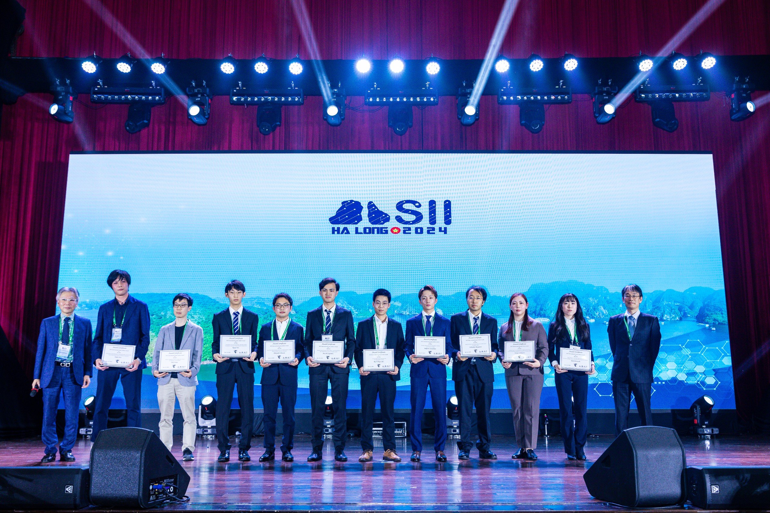 Để khuyến khích, phát triển những những kết quả nghiên cứu của các nhà nghiên cứu trẻ, Hiệp hội đo lường và điều khiển tự động Nhật Bản SICE đã trao 10 giải thưởng cho các nhà nghiên cứu trẻ là thành viên SICE từ 35 tuổi trở xuống. Các nghiên cứu được trao giải đến từ Công ty Hitachi, ĐH Tokyo, ĐH Chou, ĐH Ritsumeikan, Viện AIST. Hội thảo cũng đã trao 02 giải thưởng bài báo xuất sắc nhất (the best paper award). Giải thưởng bài báo xuất sắc nhất dành cho sinh viên, học viên cao học và nghiên cứu sinh được trao cho Nguyễn Anh Duy (ĐH Prince Edward, Canada) với công trình “Distributed Cascade Force Control of Soft-Tactile-Based Multi-Robot System for Object Transportation”. Nghiên cứu được thực hiện dưới sự hướng dẫn của GS.TS Ngô Trung Dũng (Trường Prince Edward Island) và TS. Phạm Duy Hưng (Trường ĐH Công nghệ – ĐHQGHN), và sự hợp tác với nhóm của PGS. TS Hồ Anh Văn và các học trò tại Viện Khoa học và công nghệ tiên tiến Nhật Bản.