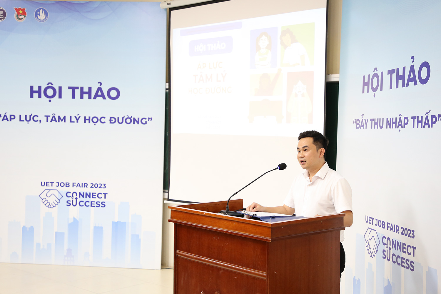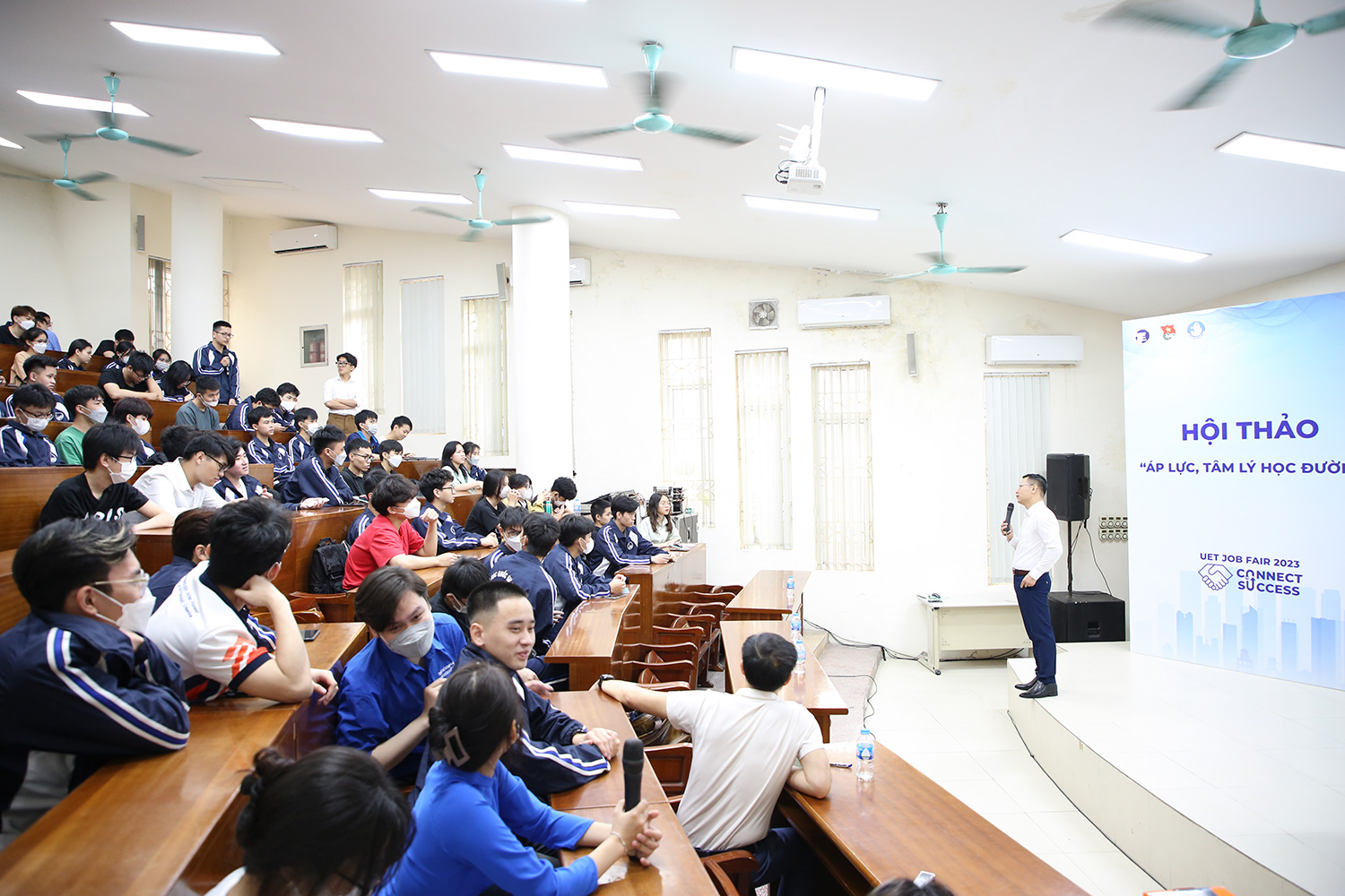 Tiếp nối chuỗi sự kiện “Ngày hội việc làm Công nghệ UET Job Fair 2023”, Trường Đại học Công nghệ (Đại học Quốc gia Hà Nội) đã tổ chức hội thảo “Áp lực, tâm lý học đường” vào sáng ngày 25/03/2023 tại 3G3.