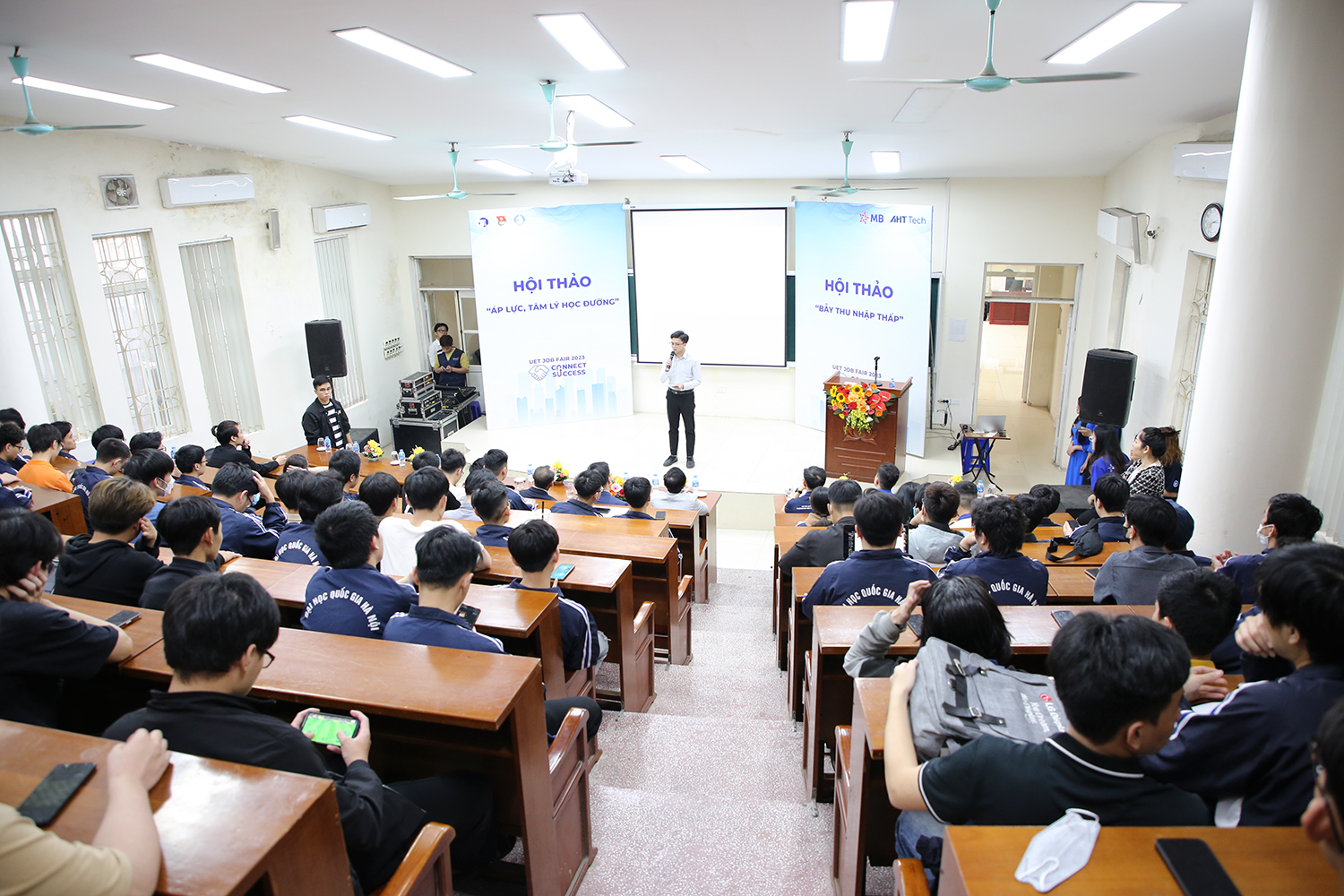 Buổi hội thảo “Bẫy thu nhập thấp” là một trong những chương trình mở đầu cho sự kiện “Ngày hội việc làm Công nghệ UET Job Fair 2023” đã kết thúc thành công, giúp sinh viên có thêm nhiều kiến thức kỹ năng và ngày 25/03/2023 sẽ là hoạt động “tiền” sự kiện tiếp theo với chủ đề “Áp lực tâm lý học đường” để giúp sinh viên “làm mới” cảm xúc của bản thân. Từ đó, sinh viên sẽ có những trải nghiệm và hoạt động tuyển dụng hiệu quả tại UET Job Fair 2023 do Trường ĐH Công nghệ tổ chức vào ngày 01/04/2023 tới đây.