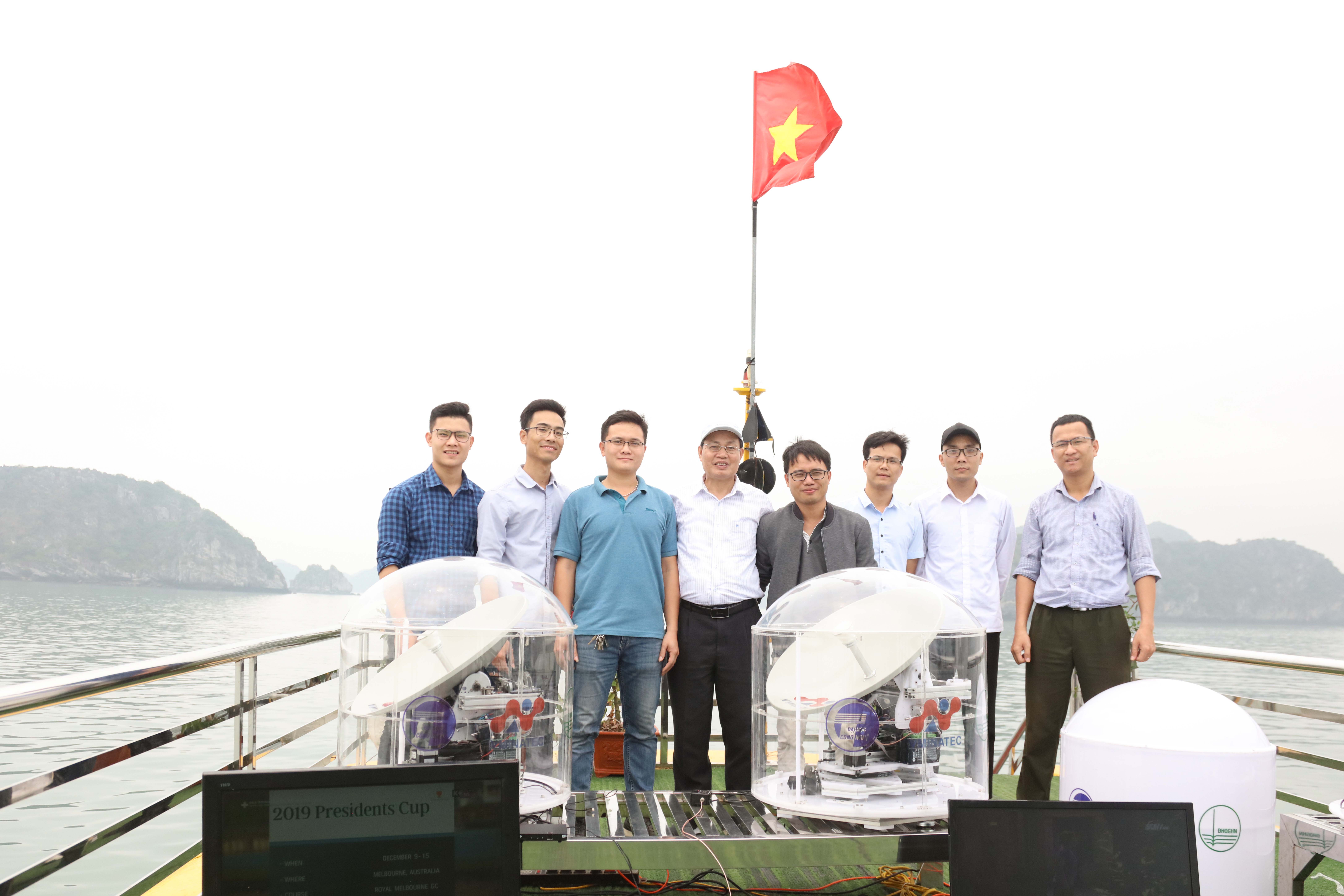 Nhóm thực hiện đề tài nghiên cứu sản phẩm thương mại hóa trạm thu di động tín hiệu truyền hình vệ tinh ứng dụng trên tàu biển