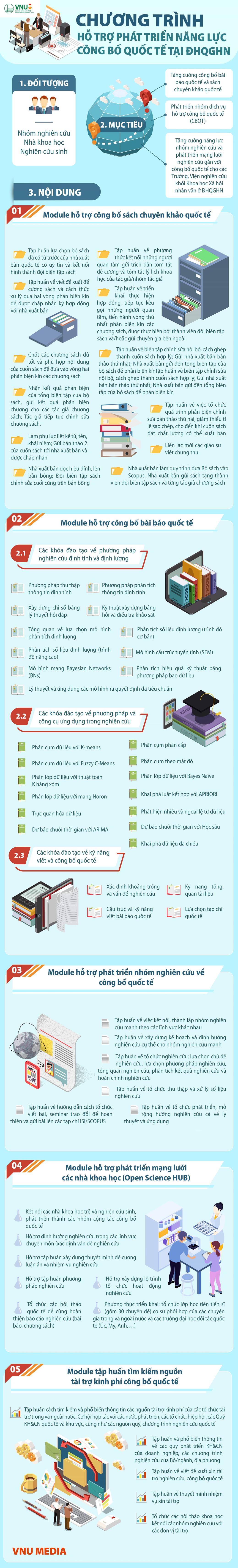[Infographic] Chương trình hỗ trợ phát triển năng lực công bố quốc tế cho nhóm nghiên cứu, nhà khoa học và nghiên cứu sinh ở ĐHQGHN