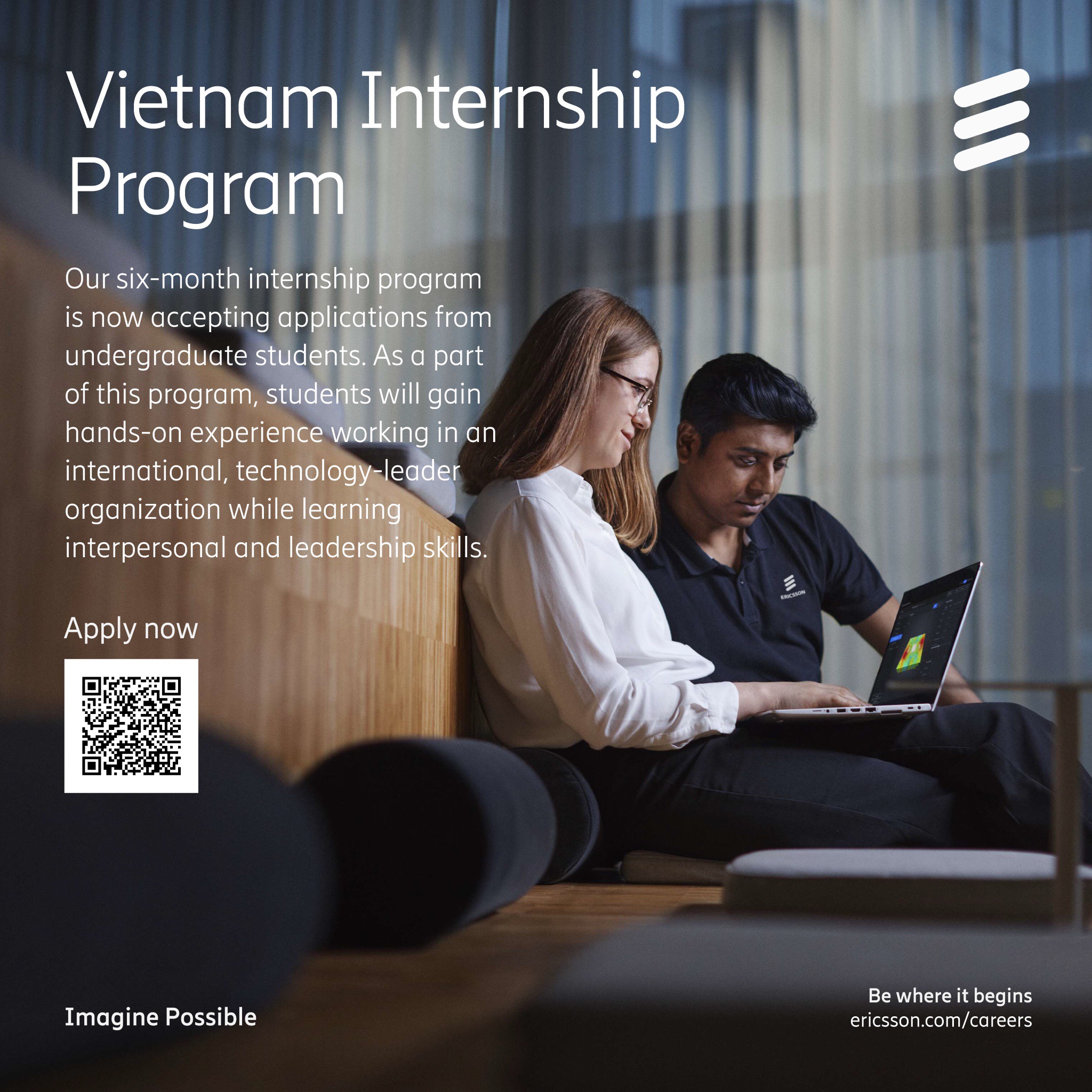 We are now looking for undergraduate students to join Ericsson Vietnam in a six-month Internship program. This program is designed to support you to gain experience how things operate in an international, technology – leader organization and learn multiple soft skills in communications and leaderships, etc. which will definitely help you in your future professional endeavors.