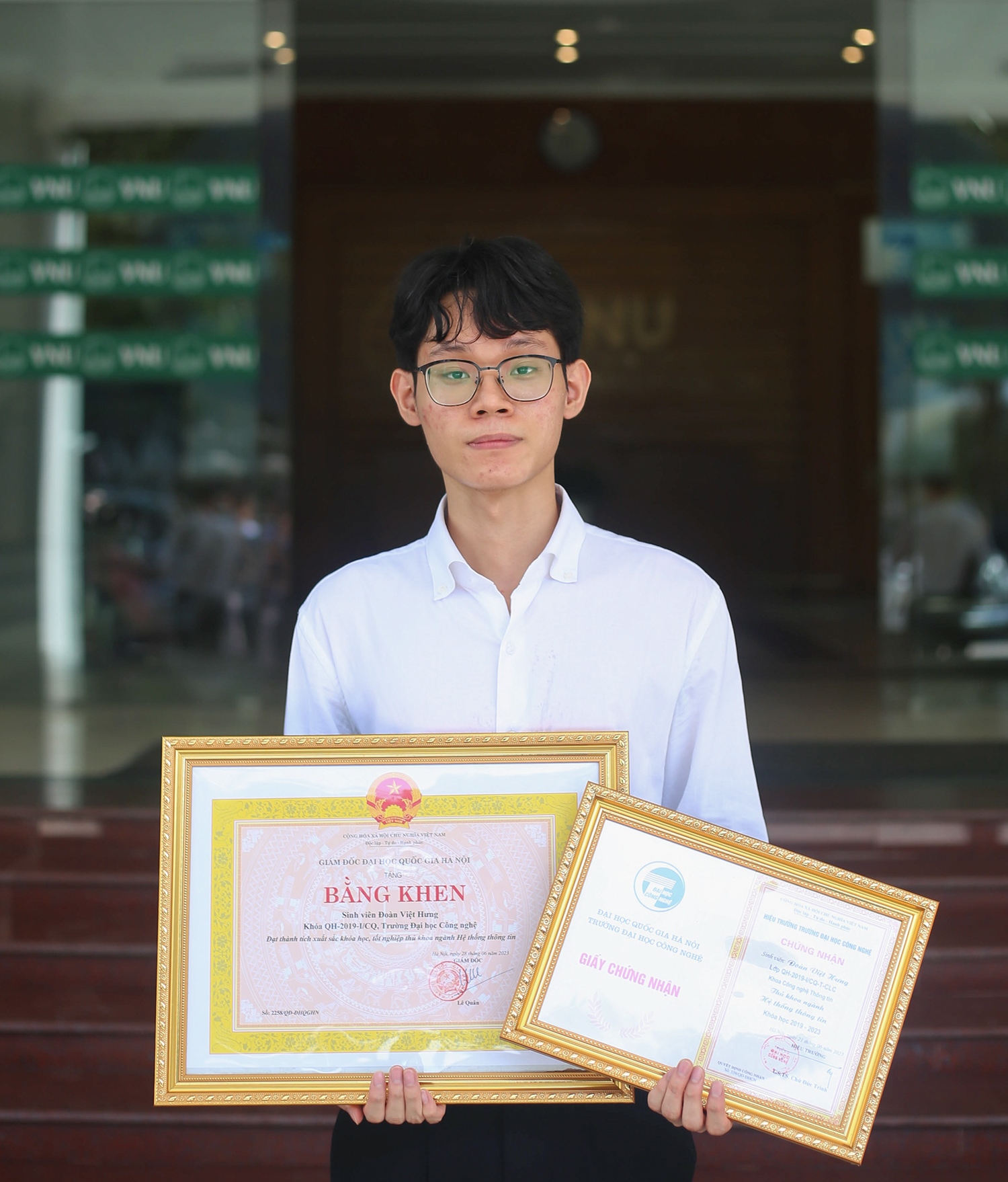Thủ khoa tốt nghiệp Đoàn Việt Hưng (khóa QH-2019-I/CQ) ngành Hệ thống thông tin tiết lộ “chìa khóa” mở cánh cửa thành công sau 4 năm học tập, rèn luyện dưới mái trường Đại học Công nghệ – nơi không chỉ có môi trường năng động, sáng tạo mà còn nhiều học bổng đa dạng dành cho sinh viên.