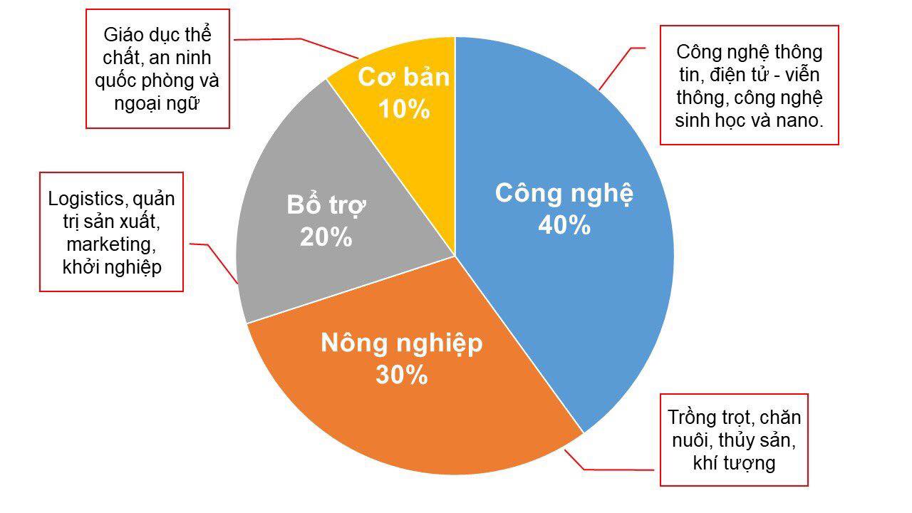 Với mục đích ứng dụng các công nghệ tiên tiến vào nông nghiệp; góp phần tạo ra các nông sản có năng suất, giá trị cao, an toàn và có sức cạnh tranh trên thị trường trong nước và quốc tế, chương trình đào tạo kỹ sư Công nghệ nông nghiệp là sự kết hợp hài hòa của công nghệ và nông nghiệp được phân bổ: