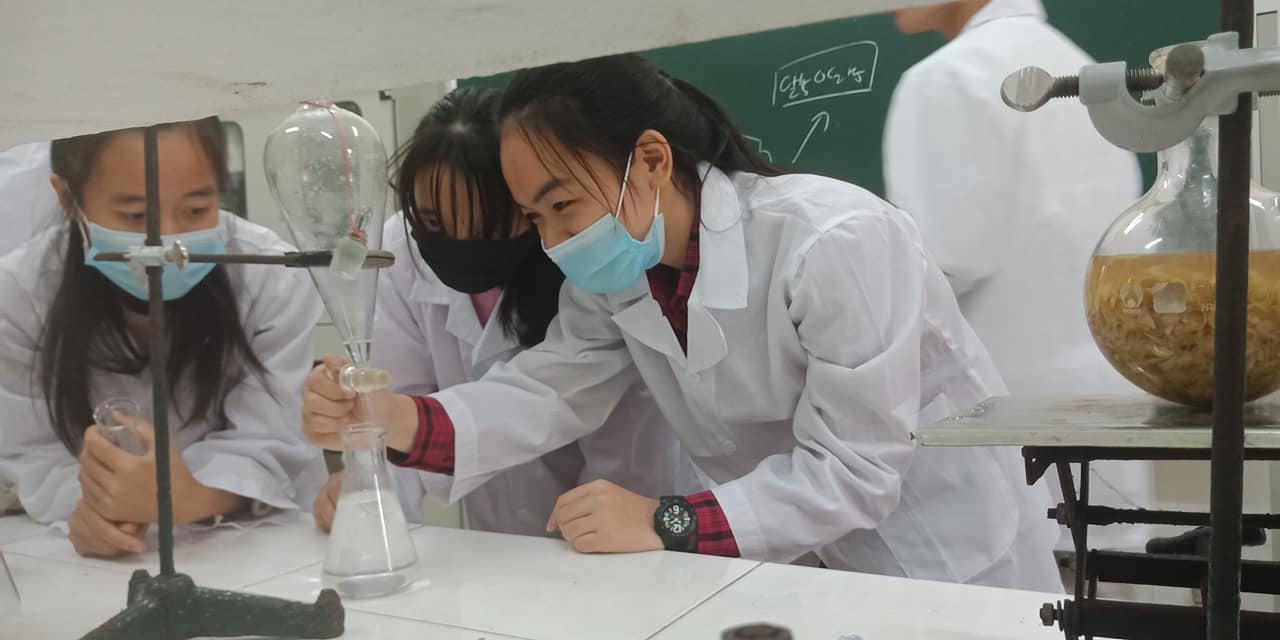 Sinh viên thực hành tách chiết tinh dầu![]()