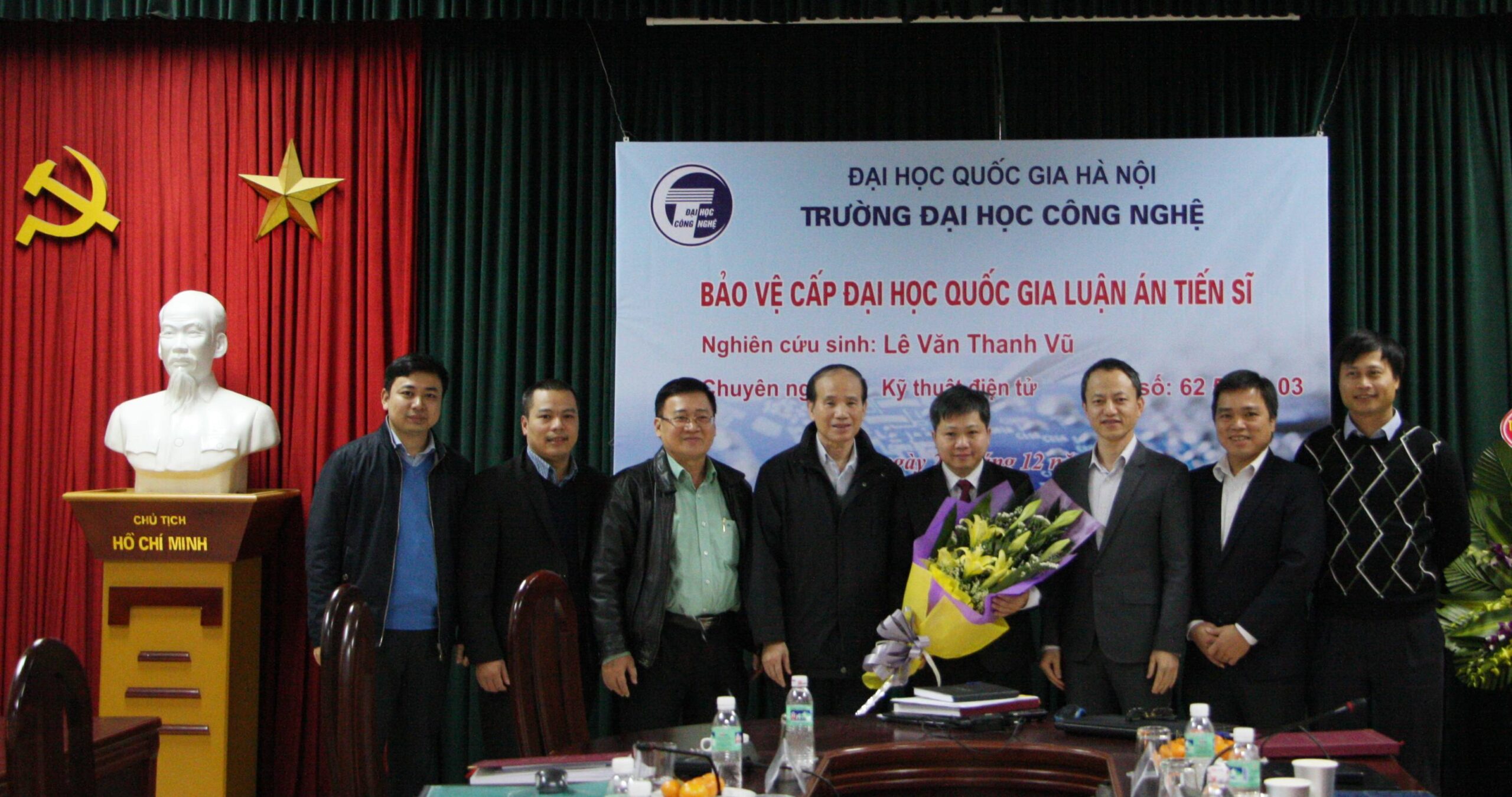 Kết thúc buổi chấm luận án tiến sĩ của NCS Lê Văn Thanh Vũ, Hội đồng đã kết luận: Luận án của NCS Lê Văn Thanh Vũ đã đáp ứng được các yêu cầu của một luận án Tiến sĩ chuyên ngành Kỹ thuật điện tử. Đề nghị Đại học Quốc gia Hà Nội xem xét cấp bằng Tiến sĩ cho NCS Lê Văn Thanh Vũ.