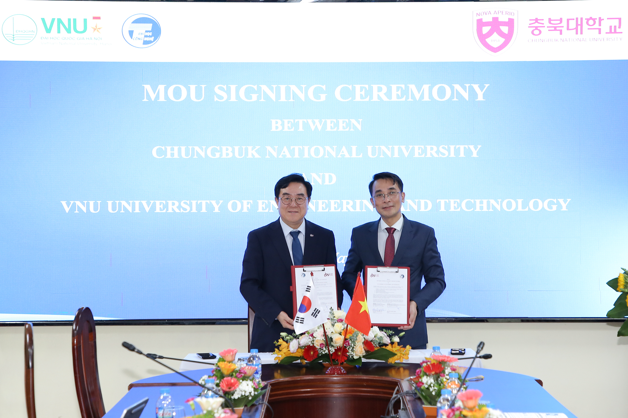 Ngày 30/5/2024, tại Trường Đại học Công nghệ – Đại học Quốc gia Hà Nội (VNU-UET) đã diễn ra lễ ký kết thỏa thuận hợp tác trong đào tạo, nghiên cứu với Trường Đại học Quốc gia Chungbuk (CBNU), Hàn Quốc do GS.TS. Chang Seop Koh – Chủ tịch CBNU làm trưởng đoàn cùng đại diện các phòng, ban CBNU.