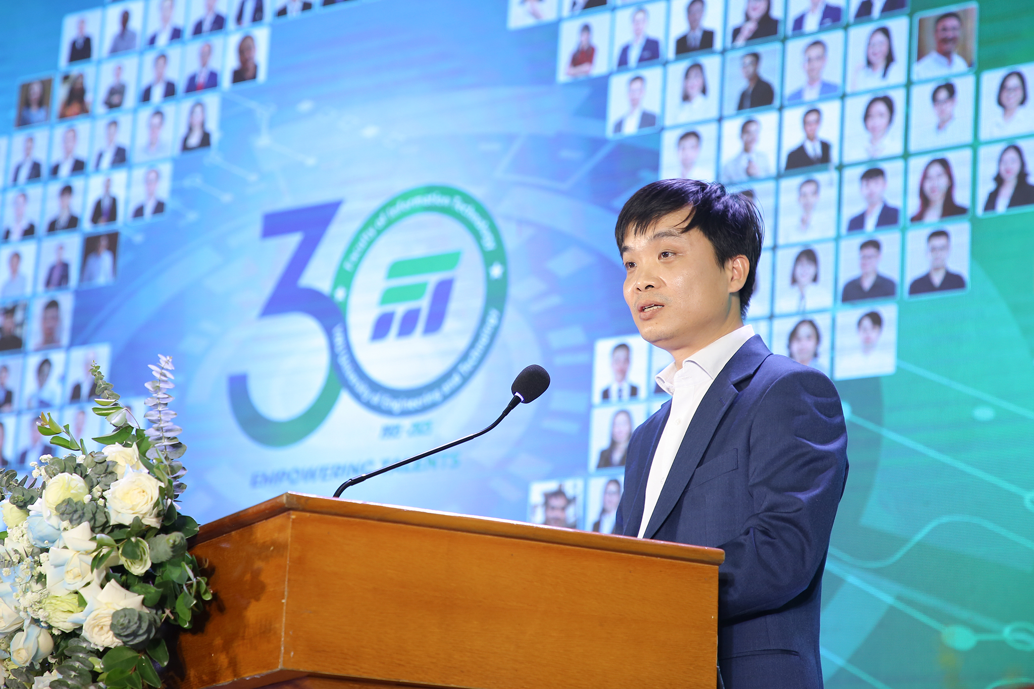 Phát biểu tại buổi lễ, Phó Giám đốc ĐHQGHN Phạm Bảo Sơn gửi lời chúc mừng và tri ân tới các thế hệ thầy cô, cán bộ, sinh viên và cựu sinh viên của Khoa CNTT. Ông khẳng định, 30 năm là chặng đường đủ dài để Khoa khẳng định vị thế của một trung tâm đào tạo và nghiên cứu hàng đầu về CNTT của Việt Nam.