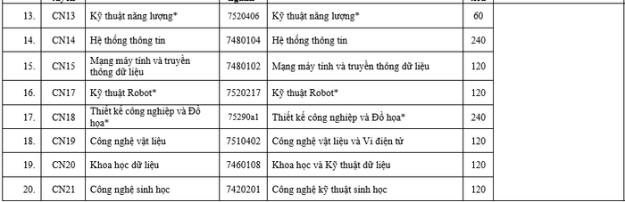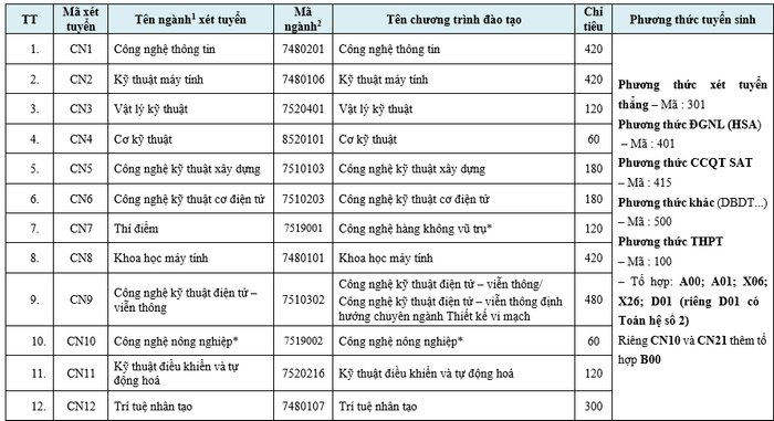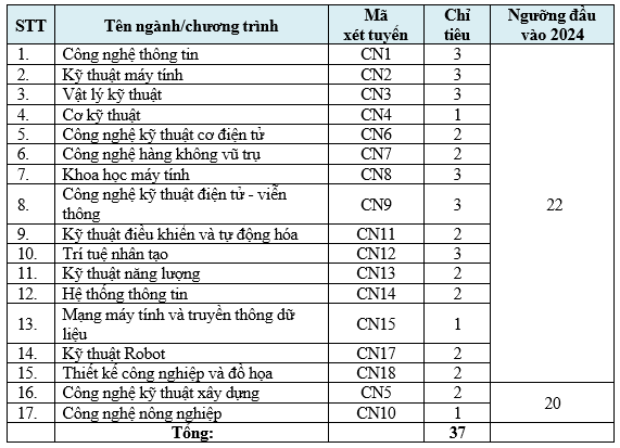 Chỉ tiêu tuyển sinh năm 2025 của Trường Đại học Công nghệ.