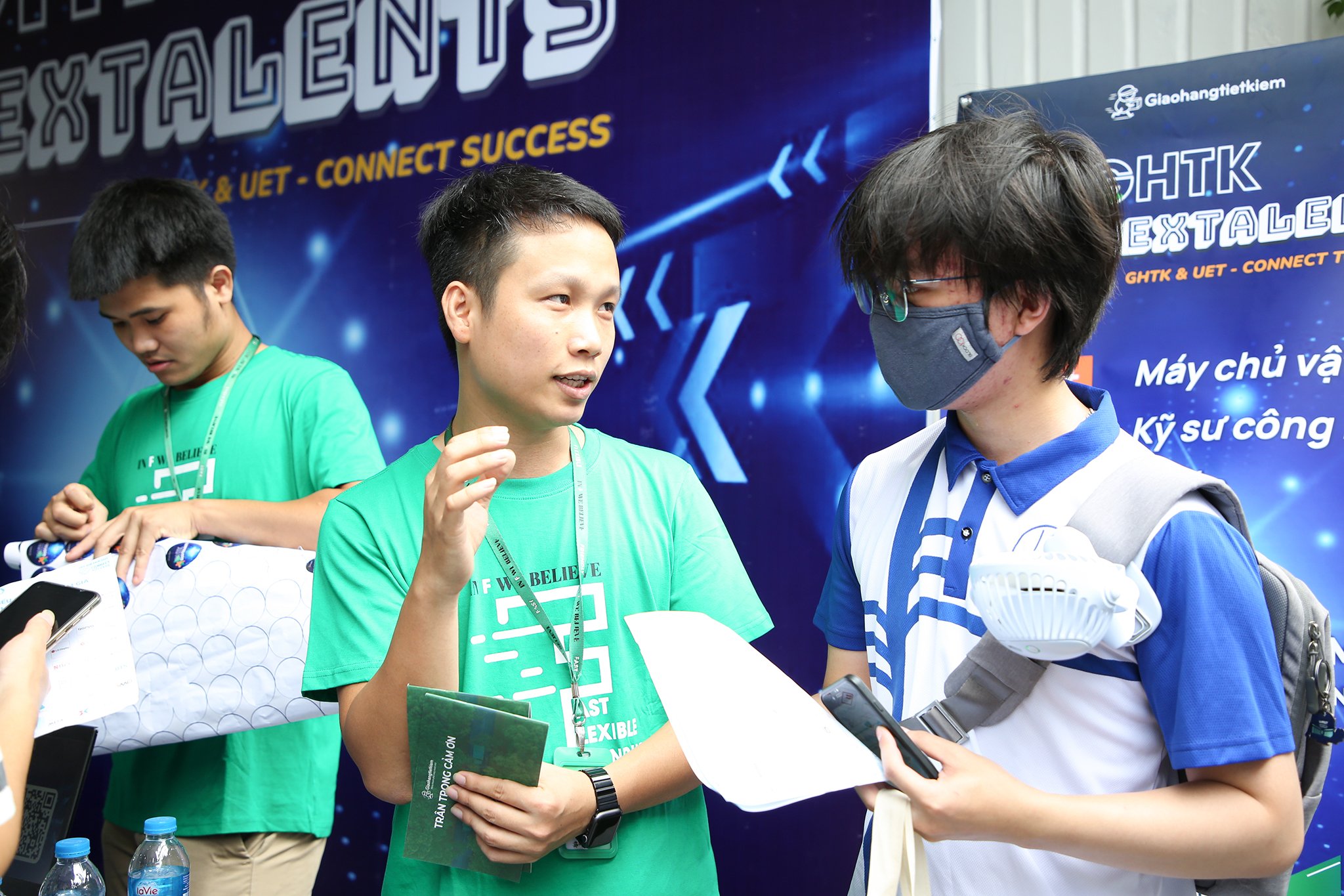 Là một trong những doanh nghiệp nhiều năm liền gắn bó và hợp tác kết nối với Ngày hội việc làm do Trường ĐHCN tổ chức, Ông Bùi Đức Tài – đại diện Công ty cổ phần Giao hàng Tiết kiệm (GHTK) cho biết: “Ngày hội việc làm là dịp để sinh viên và các doanh nghiệp gặp gỡ, giao lưu, có những điểm chạm trải nghiệm thực tế, kiến tạo nhiều cơ hội hợp tác tốt. Đến với ngày hội việc làm, GHTK mong muốn được chia sẻ, giới thiệu các sản phẩm công nghệ do người Việt trực tiếp phát triển, bồi dưỡng sự tự tin về sản phẩm công nghệ Việt; đồng thời sẻ chia kinh nghiệm, tư vấn định hướng của những thế hệ đàn anh, đàn chị đi trước. Từ đó, các bạn sinh viên có thêm góc nhìn đa chiều từ thực tế, hiểu được những nhu cầu tìm kiếm các tài năng trẻ của các doanh nghiệp, các xu hướng công nghệ – xu hướng phát triển sản phẩm. Và quan trọng hơn cả, các bạn có thể hiểu rõ hơn được vai trò chuyên môn của mình khi tham gia vào các dự án, các đội nhóm thực tế, phát triển thêm các kỹ năng mềm phục vụ cho công việc. Qua mỗi dịp tham dự ngày hội việc làm, GHTK đã tiếp cận được hơn 3.000 sinh viên; tương tác, phỏng vấn trực tiếp hơn 500 sinh viên. Vì vậy, hiện nay GHTK có hơn 30% nhân viên là các sinh viên, cựu sinh viên Trường ĐHCN, giữ vai trò quan trọng từ kỹ sư công nghệ, TechLeader, đến các chuyên gia công nghệ. Điểm đặc biệt của sinh viên UET là các bạn rất đa màu sắc, được đào tạo với các kiến thức nền tảng tốt chuyên sâu đến từ nhiều chuyên môn khác nhau, mang trong mình nhiệt huyết, sự tự tin và nuôi dưỡng những mục tiêu lớn”.