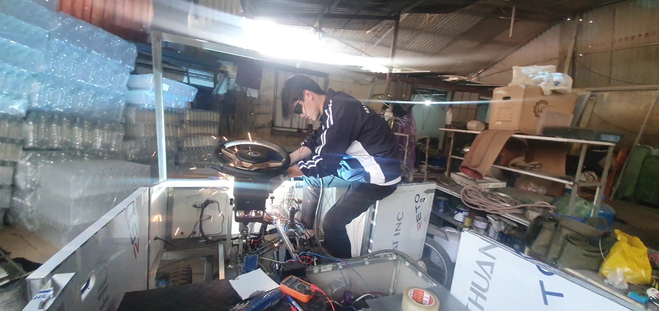 Quá trình hoàn thiện xe tự hành của nhóm sinh viên tại xưởng cơ khí