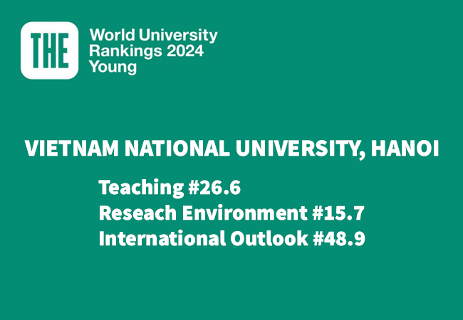 Trước đó, vào tháng 5/2024, ĐHQGHN gia tăng chỉ số tiêu chí quốc tế hóa và môi trường nghiên cứu trong Bảng xếp hạng đại học trẻ thế giới 2024 (Times Higher Education Young University Rankings 2024 – THE YUR 2024). ĐHQGHN với tiêu chí Giảng dạy (26,6 điểm – tăng 2,9 điểm so với kỳ xếp hạng THE YUR 2023 – xếp top 1 Việt Nam) – qua đó, duy trì vị thế hàng đầu trong hoạt động đào tạo Việt Nam. Ngoài ra, ĐHQGHN còn có sự gia tăng ở 2 nhóm tiêu chí khác là Môi trường nghiên cứu (15,7 điểm – tăng 2,2 điểm so với kỳ xếp hạng trước) và Quốc tế hóa (48,9 điểm – tăng 3,4 điểm so với kỳ xếp hạng trước – đây cũng là nhóm tiêu chí có điểm cao nhất của ĐHQGHN).