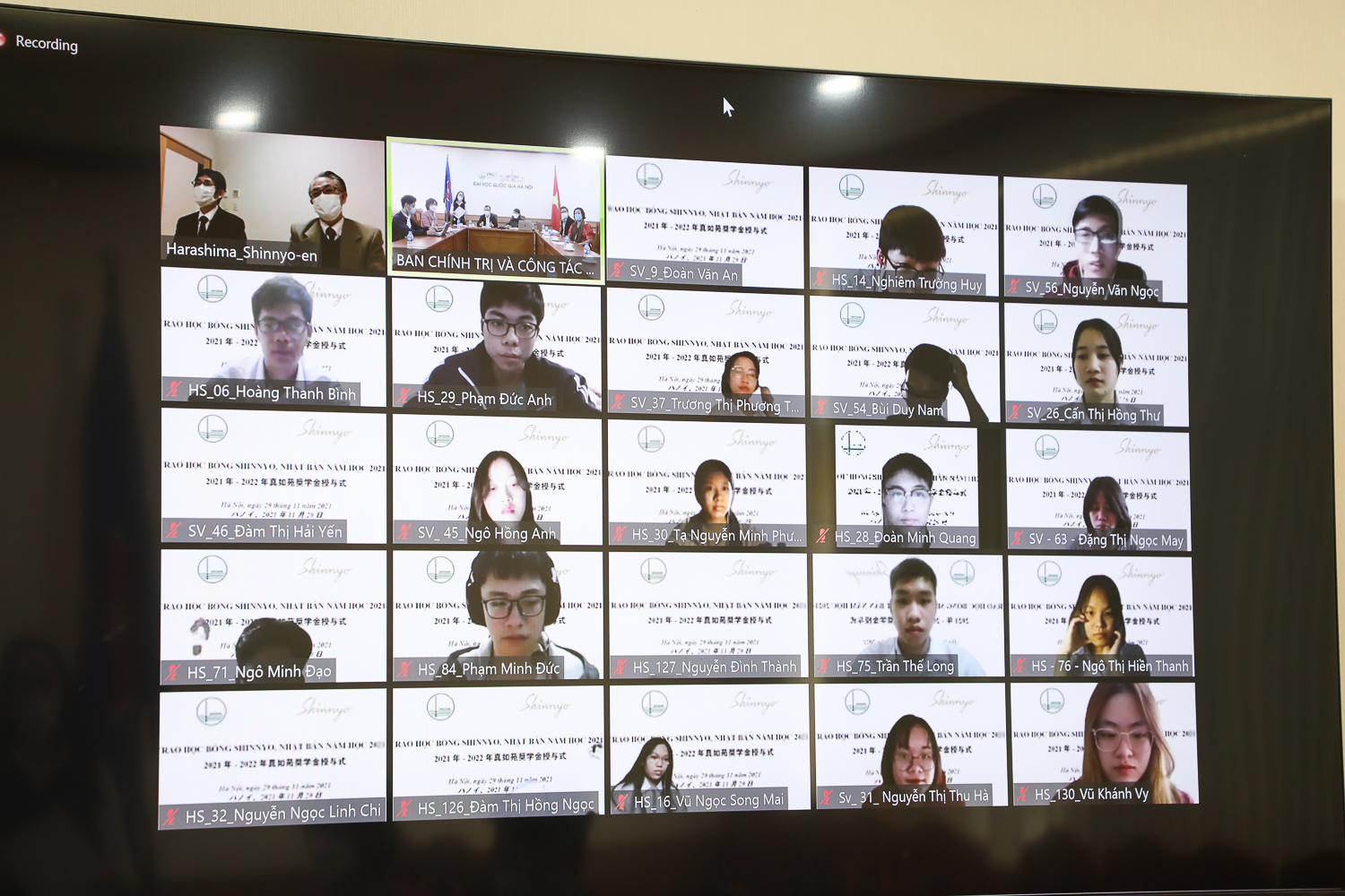 Do ảnh hưởng của dịch covid 19 lễ trao học bổng Shinnyo, Nhật Bản năm học 2021-2022 được tổ chức theo hình thức trực tuyến